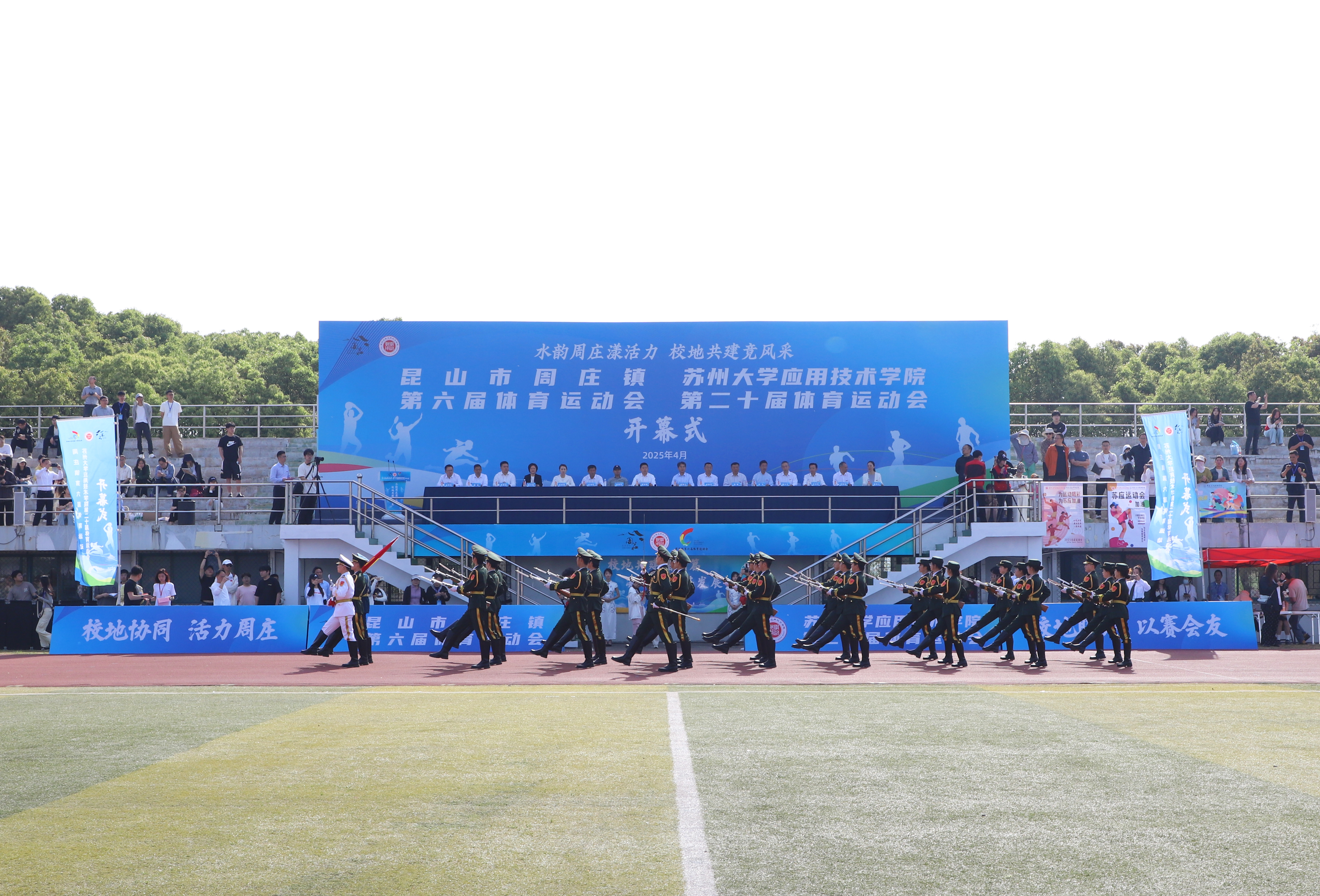 人间四月天,运动正当时!4月18日上午,学院一期田径场上彩旗飞扬、人声鼎沸,昆山市周庄镇人民政府与苏州大学应用技术学院联合举办的“水韵周庄漾活力▪校地共建竞风采”体育运动会燃情启幕!