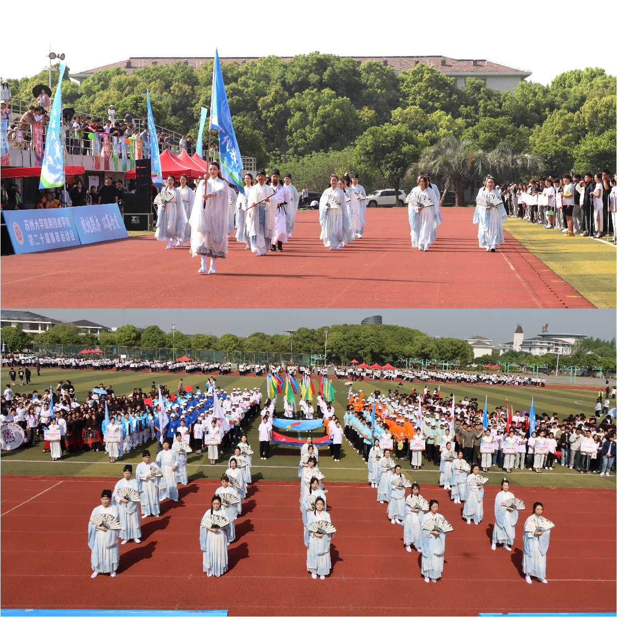 周庄镇党委副书记、镇长吴剑峰,昆山市文体广旅局副局长孙列平,周庄镇人大主席叶剑虹,党委副书记、政协联络工委主任范茜茜,学院党委副书记、副院长钮秀山,副院长席拥军,纪委书记陈敏等校地领导,与千余名师生、周庄镇各部门代表共同见证了这场融合传统文化与青春激情的体育盛会。开幕式由学院团委书记严永伟主持。