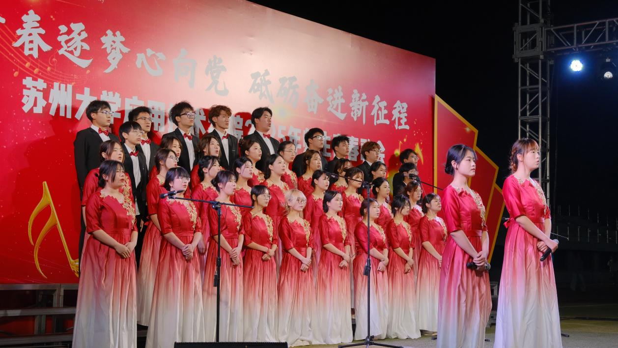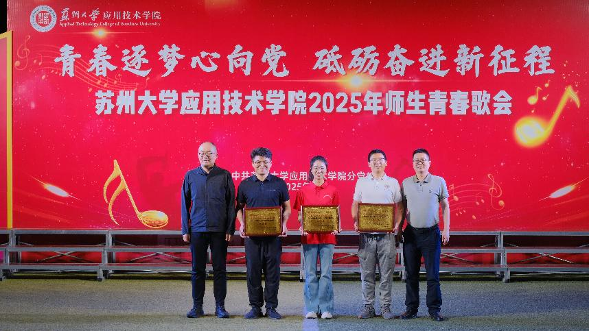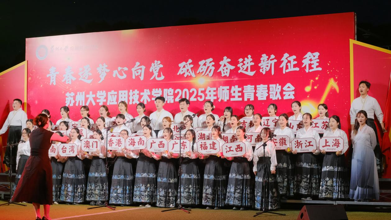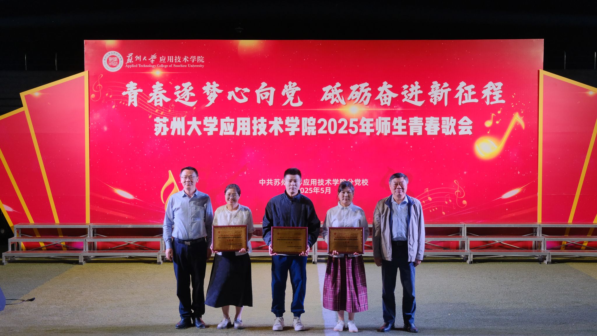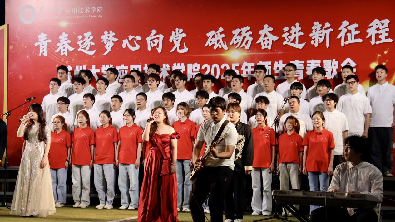 为深入学习宣传贯彻习近平新时代中国特色社会主义思想和党的二十大精神,5月12日晚,“青春逐梦心向党,砥砺奋进新征程”——2025年苏州大学应用技术学院师生青春歌会在一期操场举行。学院党委副书记、副院长钮秀山,副院长席拥军,纪委书记陈敏,保卫处处长金红祥,商学院党总支书记张宗,文旅学院党总支书记燕君受邀出席并担任评委。各党支部师生代表共同见证了这场以歌传情、以声筑梦的青春盛会。