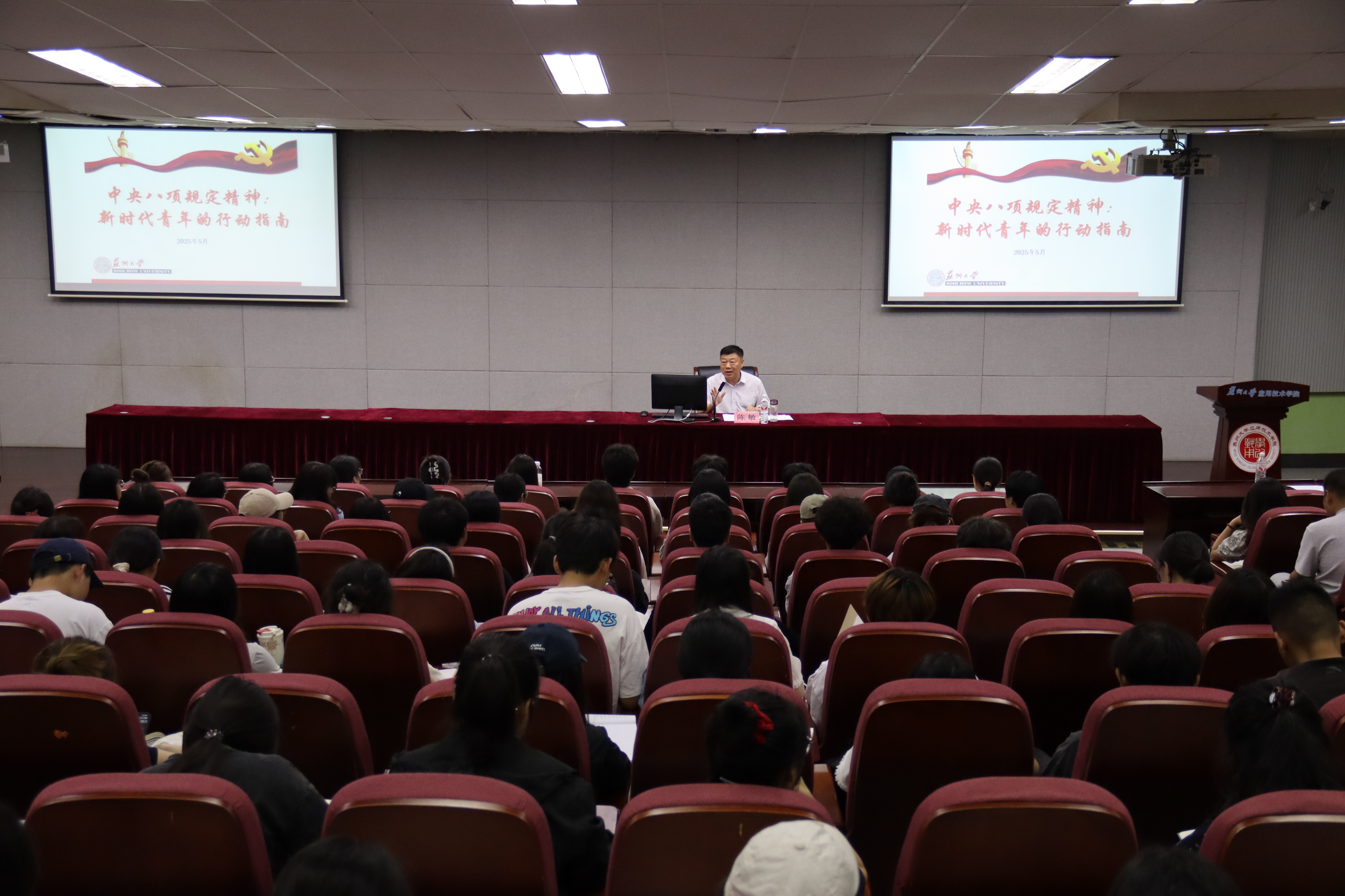 陈敏结合当前党风廉政建设和反腐败斗争形势,阐释了中央八项规定精神在新时代的政治意义、社会价值与实践导向。他指出,青年学生作为党和国家事业的生力军,必须从历史维度理解中央八项规定精神的战略意义,将其视为锤炼党性、提升修养的行动标尺。