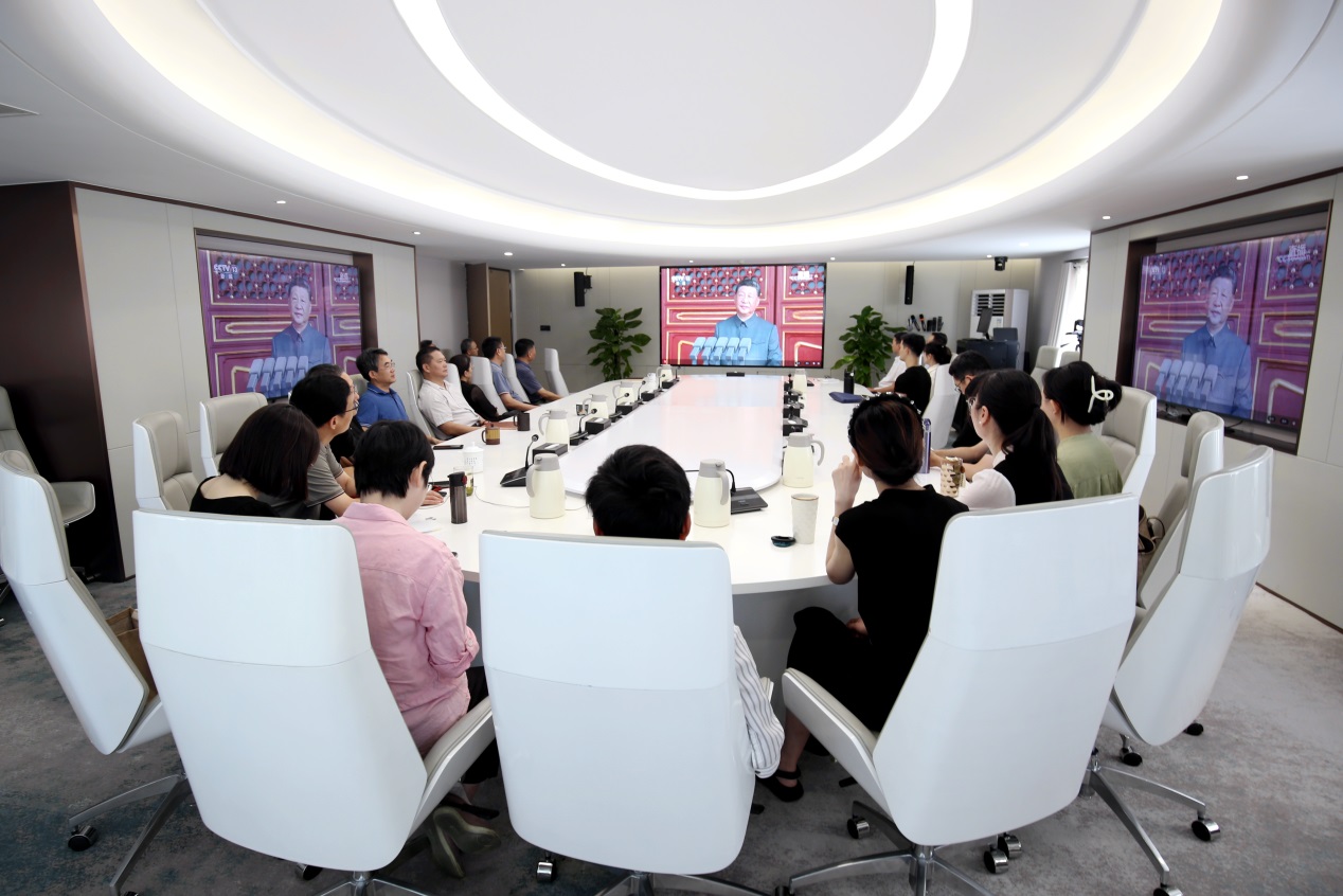 收看现场,大家神情庄重、心情振奋,认真聆听中共中央总书记、国家主席、中央军委主席习近平重要讲话,用心思考精神内涵。在阅兵仪式环节,当看到空中护旗梯队、徒步方队、战旗方队、装备方队、空中梯队依次通过天安门广场,一批新型装备、明星装备集中亮相,大家心潮澎湃、感慨万千,被壮观、震撼的盛大场面深深感染,强烈的民族自豪感和爱国情怀油然而生。参会人员们全程神情专注、备受鼓舞,认真观看、记录,会场时时响起热烈掌声。