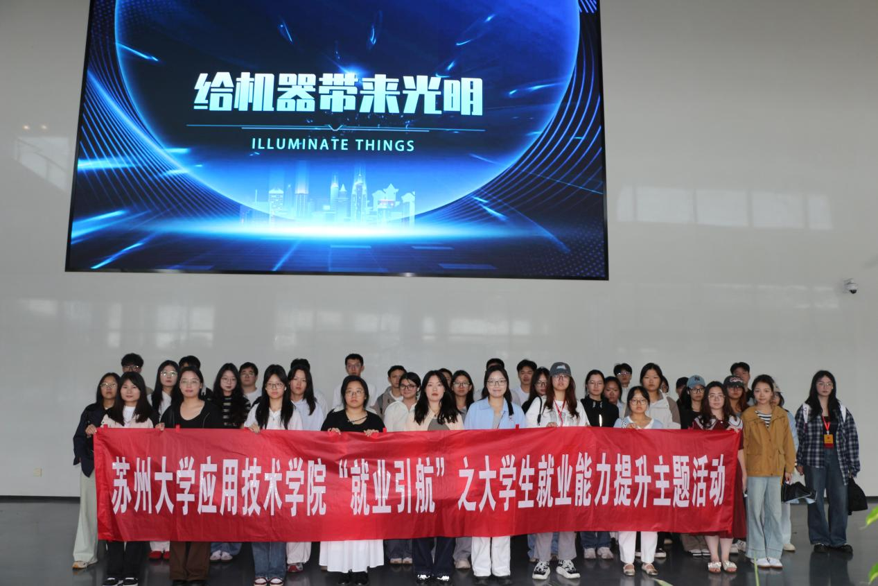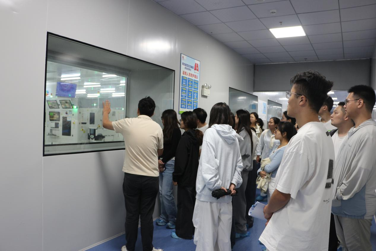当日下午,师生一行赴昆山丘钛微电子科技股份有限公司开展企业沉浸式见学。在昆山丘钛微电子科技股份有限公司,企业对接人详细介绍了公司的发展历程与核心战略,在科技感十足的展示区域,重点展示了其最新研发的高像素手机摄像头模组、应用于智能汽车的激光雷达模组以及创新的屏下指纹识别模组等核心产品,生动诠释了其在视觉感知技术领域的深厚积累与前沿探索。同学们随后深入精密制造车间,近距离观摩了自动化生产线和严苛的品控流程,对其强大的研发制造实力表示赞赏。