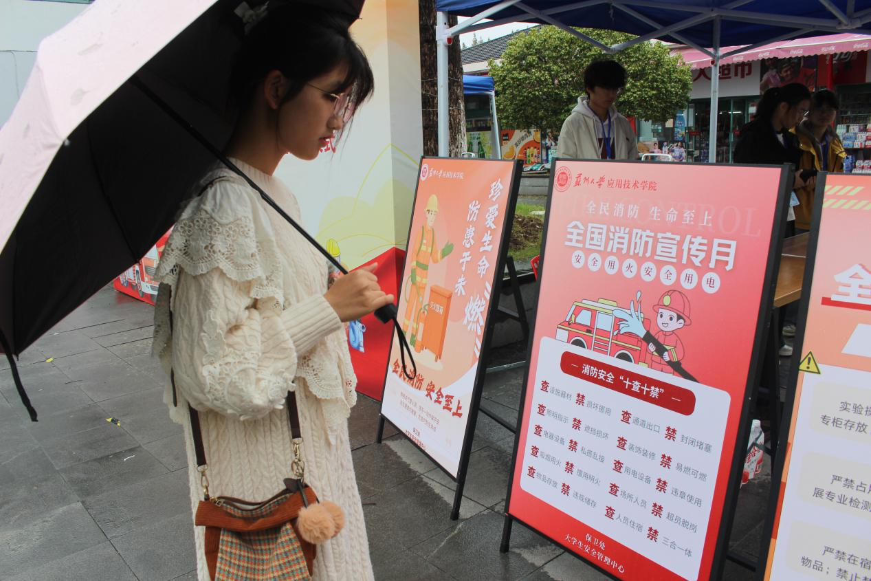 本次启动仪式拉开了学院11月消防安全月系列活动的帷幕,活动紧扣“全民消防、生命至上——安全用火用电”主题,旨在通过多元化宣传教育活动,全面提升师生消防安全“四个能力”,营造平安和谐的校园环境。仪式现场搭设的大型背景板醒目展示活动主题,周边排列的消防宣传展板以图文并茂的形式,直观呈现火灾警示案例、安全用火用电规范及自救逃生技巧,吸引了过往师生驻足观看。