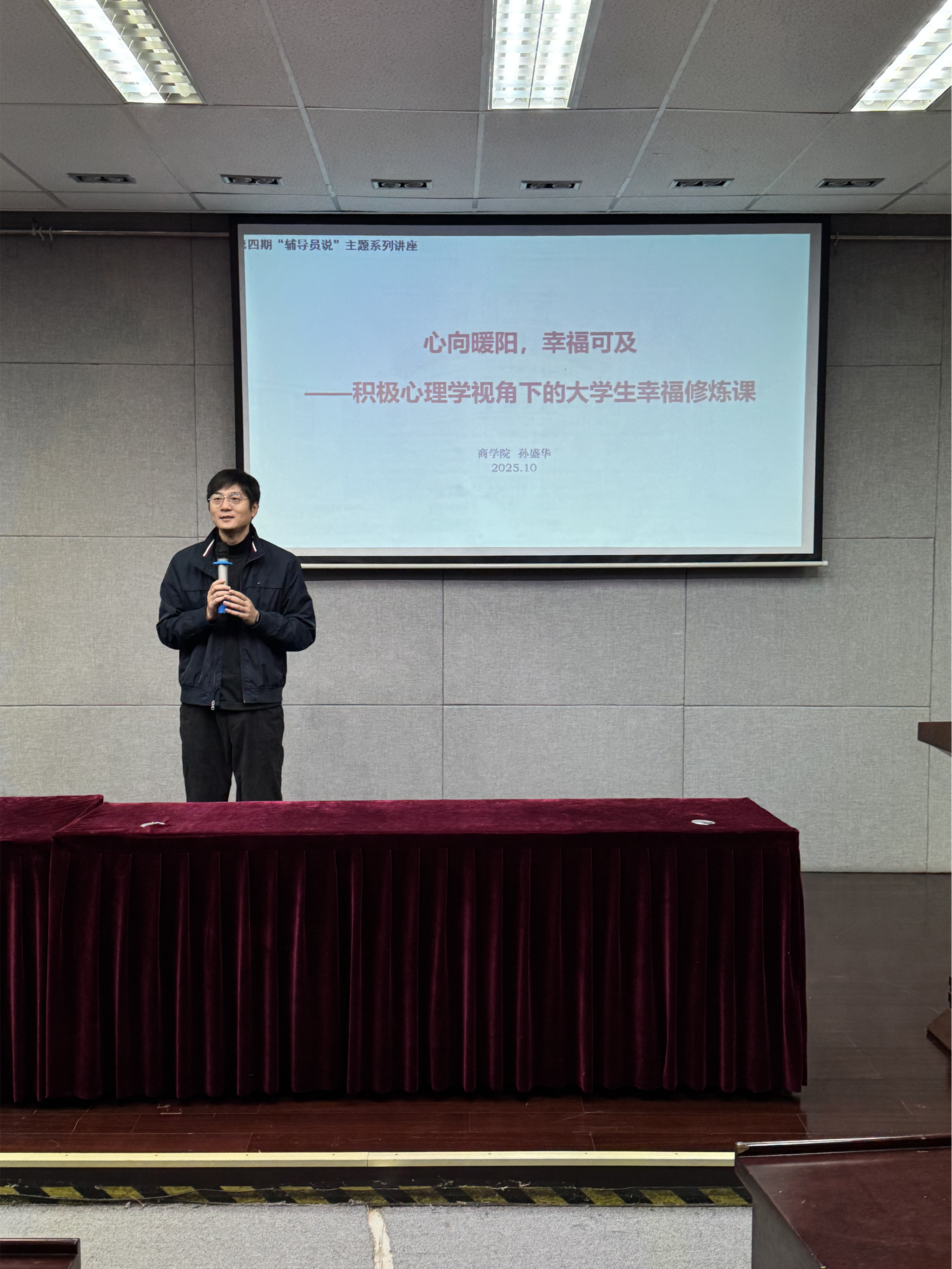 10月27日,辅导员孙盛华老师在孚新楼102报告厅做了《心向暖阳,幸福可及——积极心理学视角下的大学生幸福修炼课》主题讲座。孙老师从大众对心理学的认知偏差切入,介绍上世纪末由塞林格曼发起的积极心理学,讲解其以积极力量、善端和美德为研究对象,以及同情心、仁爱、乐观、敬业四大积极心态特征。讲座重点围绕积极的人际关系展开,孙老师结合研究与案例,阐述社会支持、亲密关系等对快乐与健康的作用,还通过沟通能力测试、第一印象测试,分享吸引力法则、欣赏赞美、倾听共情等建立积极人际关系的方法,助力大学生提升幸福感。