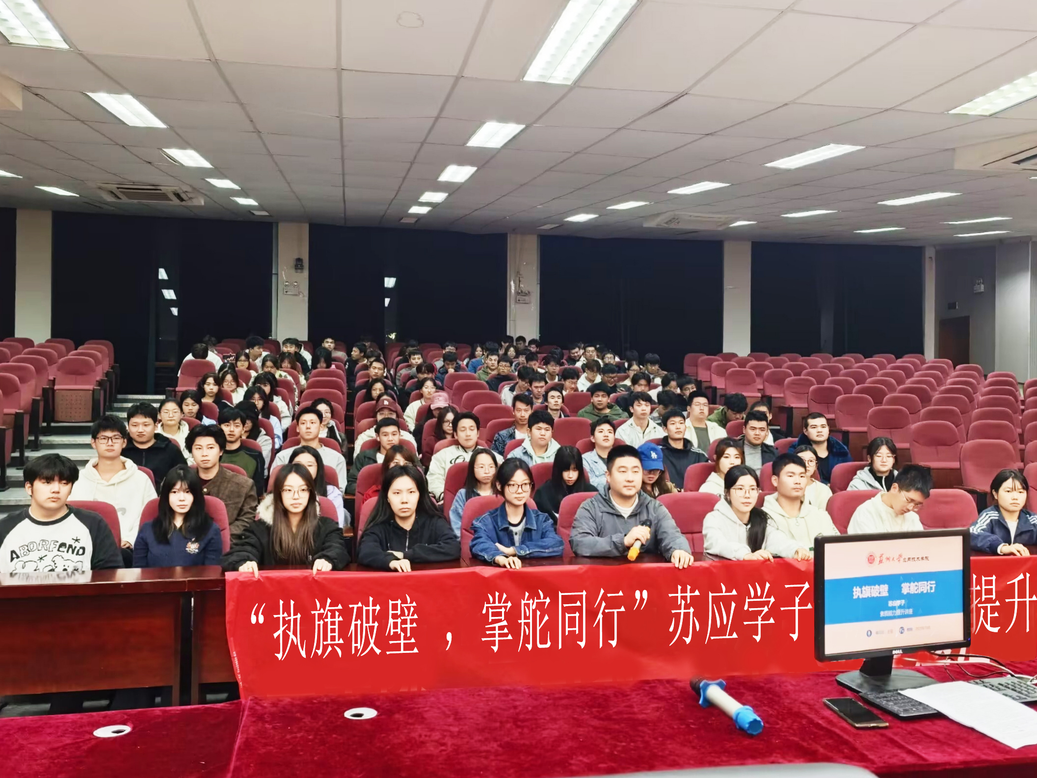 10月23日,辅导员王冠老师在孚新楼102报告厅做了《“执旗破壁,掌舵同行”苏应学子素质能力提升》主题讲座。讲座围绕“争做学校发展同行人、勇做思想引领挚旗人、善做能力提升破壁人、学做生涯规划掌舵人”四大板块,融入校史文化、思想引领、能力提升与生涯规划等内容。王老师结合自身丰富经历与鲜活案例,为苏应学子们指明成长方向,引导大家将个人发展融入学校与国家发展,锤炼综合素养。此次讲座干货满满,为苏应学子全面发展注入强劲动力。同学们将以更昂扬的姿态投入学习生活,践行“学以致用”的校训。