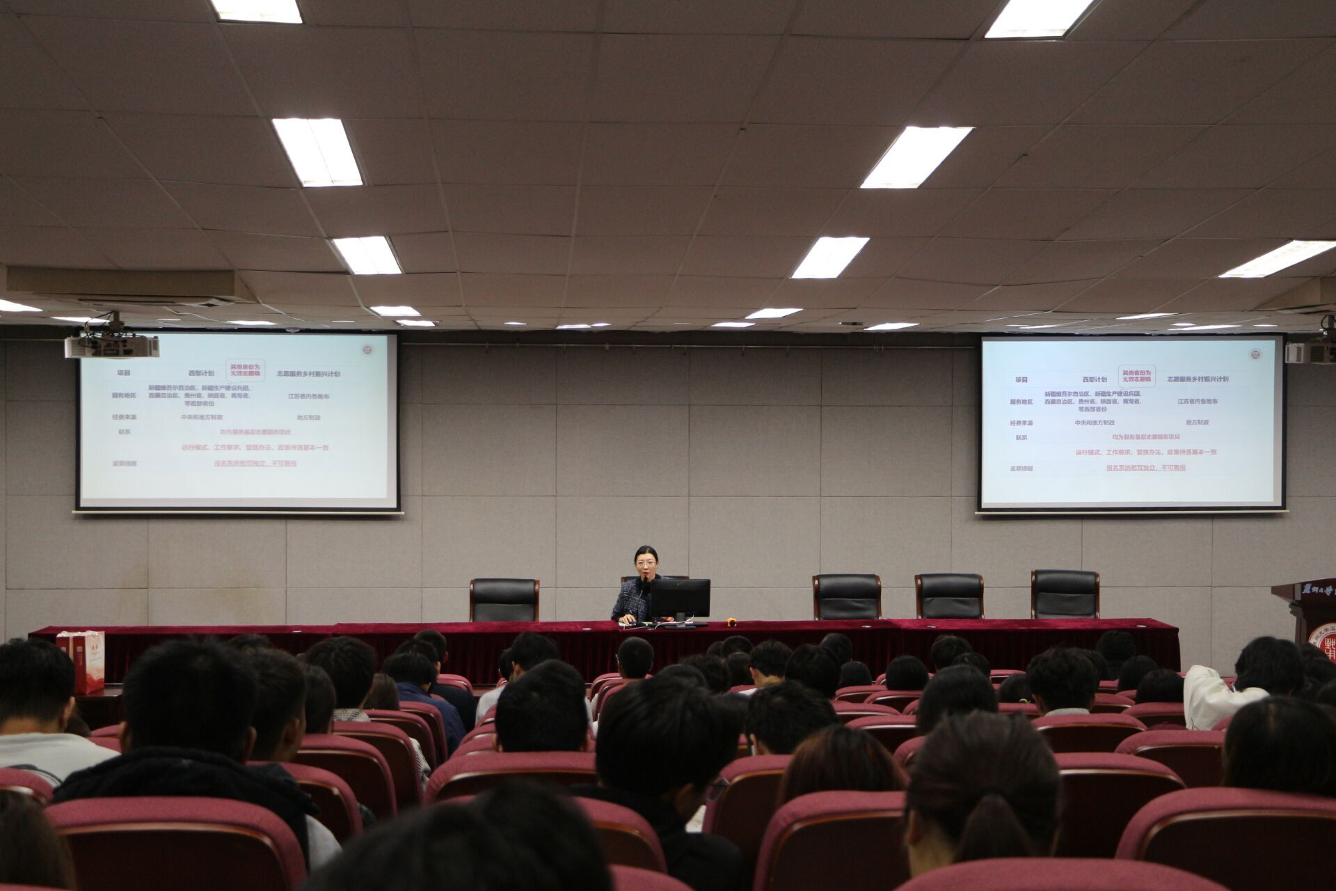 10月30日,辅导员刘译允老师在孚新楼102报告厅做了《弘扬志愿精神,奉献青春力量》主题讲座。刘老师围绕志愿服务的时代意义、政策支持及基层服务的价值内涵展开讲解,结合党的二十届四中全会精神为同学们解读投身乡村振兴、志愿服务的责任与使命。现场邀请优秀志愿者代表们分享了各自在西部建设、基层一线的服务经历,用真实案例讲述自身的收获与成长。刘老师通过政策宣讲与经验分享,积极搭建志愿服务交流平台,进一步激发青年学子的奉献热情,引导新生将个人理想融入国家发展大局,以青春力量助力基层建设与乡村振兴。