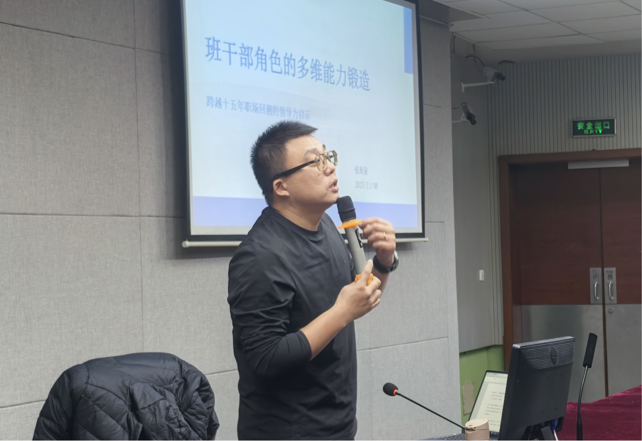 深耕企业管理领域十五年的张海泉校友,始终心系母校人才培养,此次分享既延续了他在校期间“超强执行力”的特质,更结合职场实战经验,从班级干部履职需求出发,分两大维度展开干货输出。在核心能力锻造层面,他围绕“跨场景沟通协调”“前瞻性与执行力”“资源整合与创新思维”三大模块,提出建立多层级沟通渠道、践行“非暴力沟通”模式,以及以结果为导向的“规划-实施-复盘”机制;为班级干部破解工作难题提供系统方法论;在履职实践建议层面,他进一步分享“服务而非管理”的核心定位、“构建支持系统”的协作技巧、“平衡学业与工作的艺术”,以及“常态化记录与反思”的成长习惯,所有内容均立足学生实际,兼具指导性与可操作性。