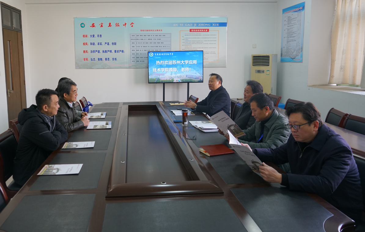 11月21日,我院到访宝应县安宜高级中学。宝应县安宜高级中学是我院重要的生源学校之一,近年来为我院输送了一大批优质生源。宝应县安宜高级中学校长荀道俊对我院来访表示欢迎,并介绍了中学基本情况。钮秀山介绍了我院办学概况及成效,反馈了安宜高中生源进校后的发展情况和毕业去向。