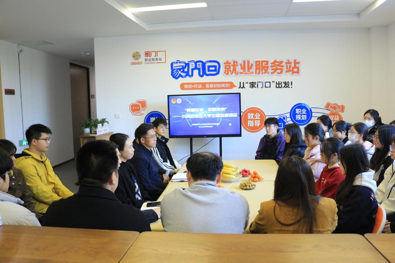 11月26日,“青春起航,职面未来”共青团促进大学生就业座谈会在我院“家门口”就业服务站举办。学院团委书记严永伟、全体团干部与2026届需就业帮扶的毕业生代表参会。