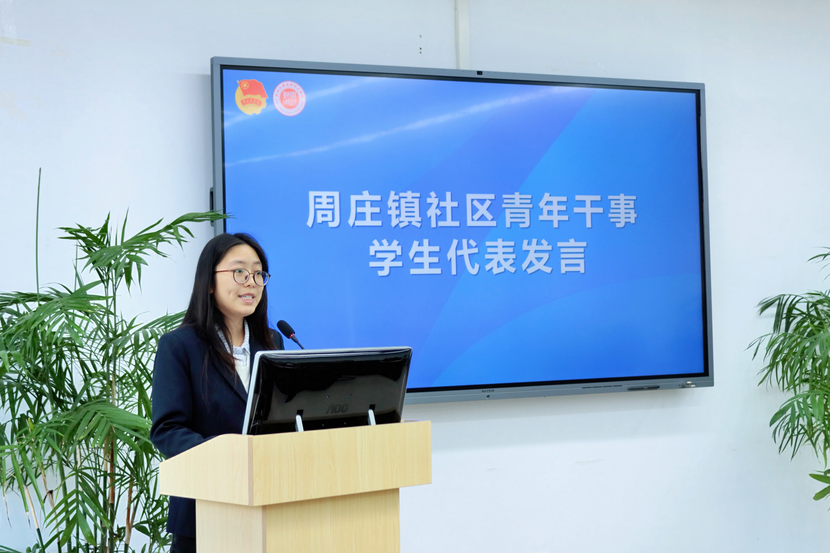 受聘周庄镇社区青年干事代表,来自工学院2026届毕业生梁金枝同学在发言中表示,“青年实干家计划”是学院团委与周庄镇团委深化校地协同、共育青年人才的重要实践平台,为青年学子扎根基层、服务地方搭建了成长桥梁。作为一名智能制造工程专业的毕业生,她将以“脚下沾泥、心系民生”的初心扎根乡村,聚焦周庄镇社会基层治理,将专业知识转化为基层发展动能,用青春实干让“人工智能”赋能乡村振兴,在服务地方经济社会发展的生动实践中书写青年担当。