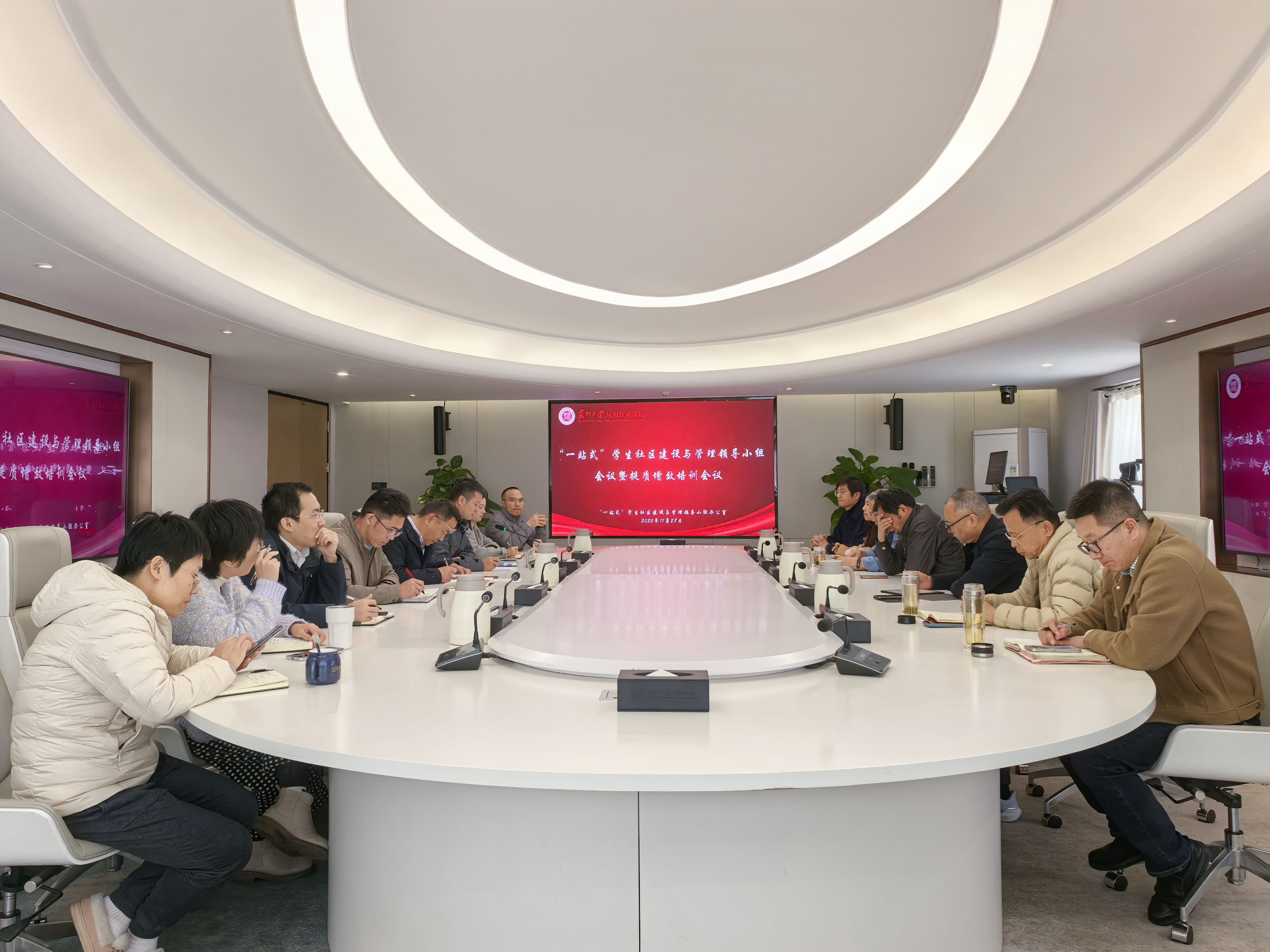为深入学习贯彻党的二十届四中全会精神,进一步落实教育部思政司《高校“一站式”学生社区综合管理模式建设提质增效指南(2025年修订版)》工作要求,推动我院“一站式”学生社区建设工作再上新台阶,11月28日,我院召开“一站式”学生社区建设与管理领导小组会议暨提质增效培训会议。我院副院长席拥军、相关职能部门负责人以及二级学院辅导员代表参会。会议由学生工作处副处长李响主持。