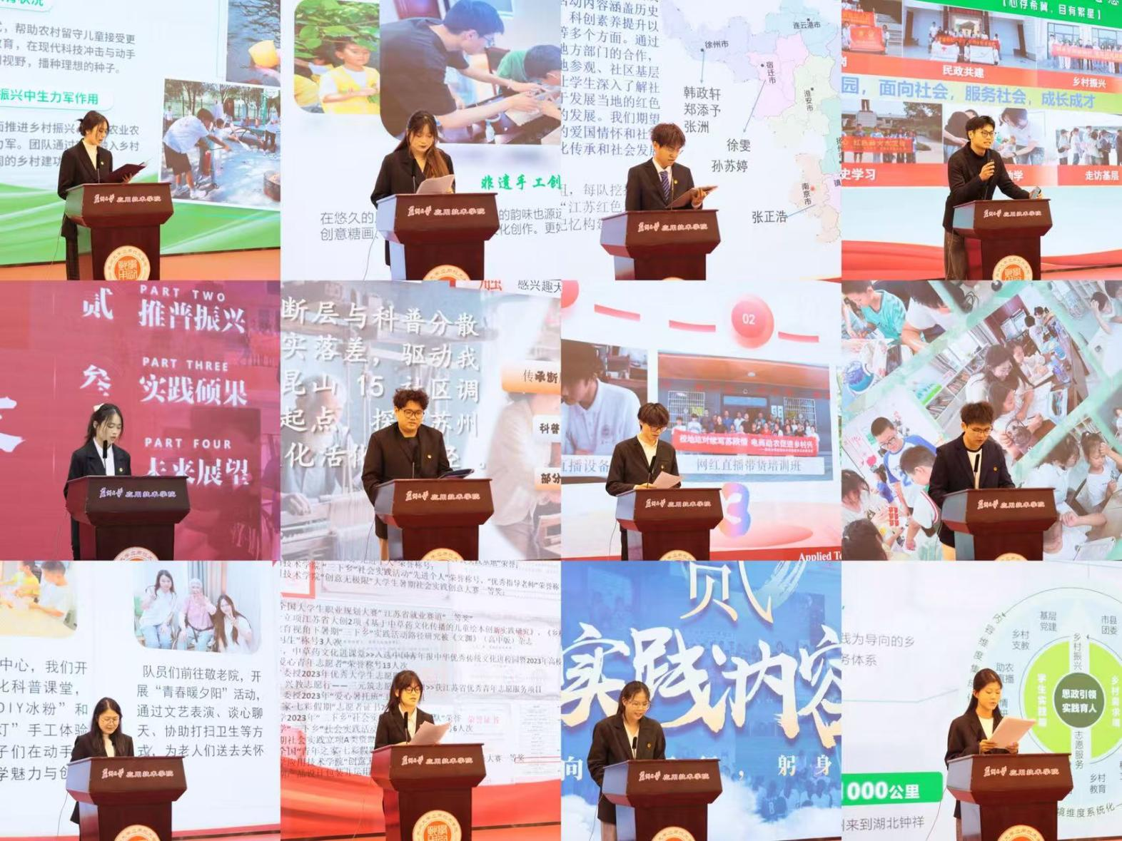 “纸上得来终觉浅,绝知此事要躬行。”在优秀团队展示环节,“小白杨”实践团、“一苇益航”实践团和“希冀繁星”志愿服务团等12支团队代表依次上台,他们用一个个鲜活故事铺展青春实践的动人画卷,让在场的同学们深切感受实践育人的磅礴力量。