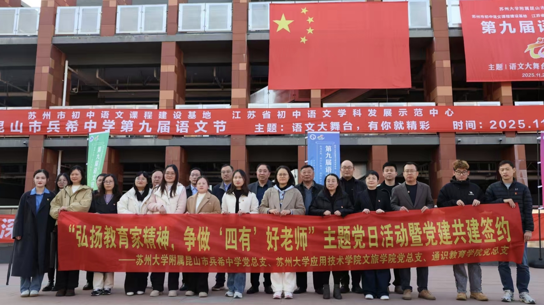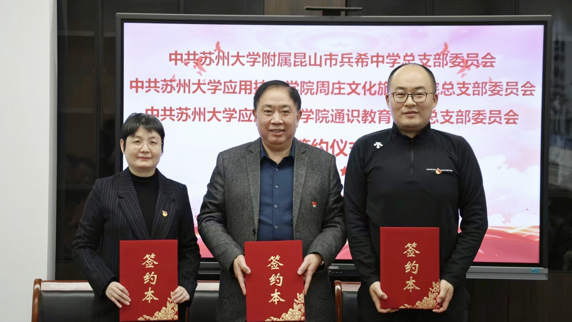 为深入贯彻落实新时代党的建设总要求,弘扬教育家精神,引导广大教师争做“四有”好老师,11月28日周庄文化旅游学院党总支、通识教育学院党总支与苏州大学附属昆山市兵希中学党总支举行党建共建签约仪式,共绘协同育人新蓝图。