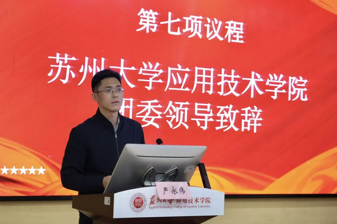 严永伟在讲话中肯定商学院团总支和学生分会在思想政治引领、基层组织建设、校园文化建设、社会实践与服务等方面的显著成效,希望新一届团学骨干做好思想引领、桥梁纽带、成长助推、自律示范工作,带领青年在新征程中勇担使命。
