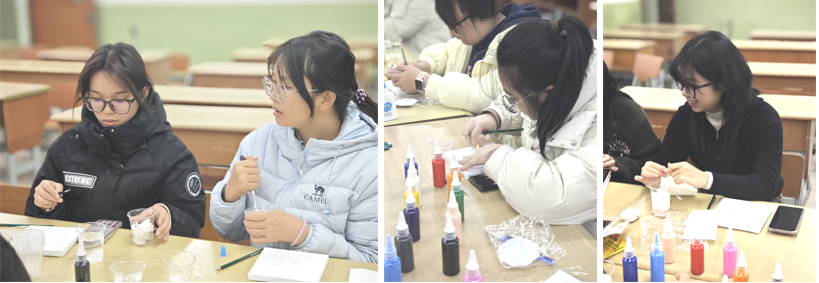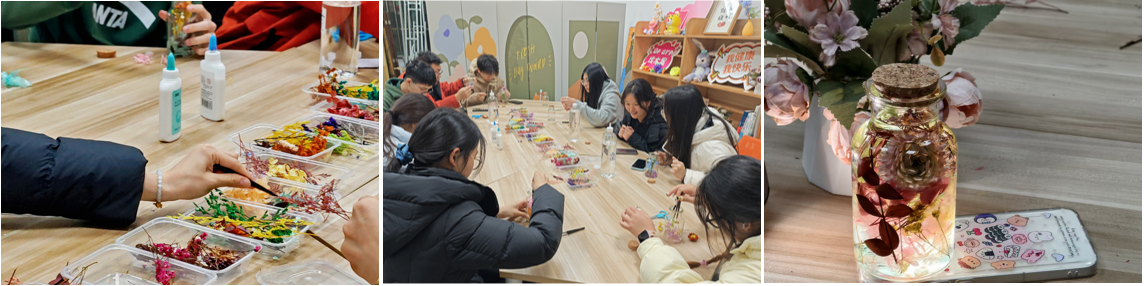 “瓶中絮语,干花寄心”浮游瓶手作活动,则引领大家在挑选干花、构思布局的过程中,将自然之美与心绪寄托封存于透明瓶内。这段静谧的创造时光,帮助同学们梳理情感、安放愿望,学习在专注中回归当下,寻得内心的安宁。