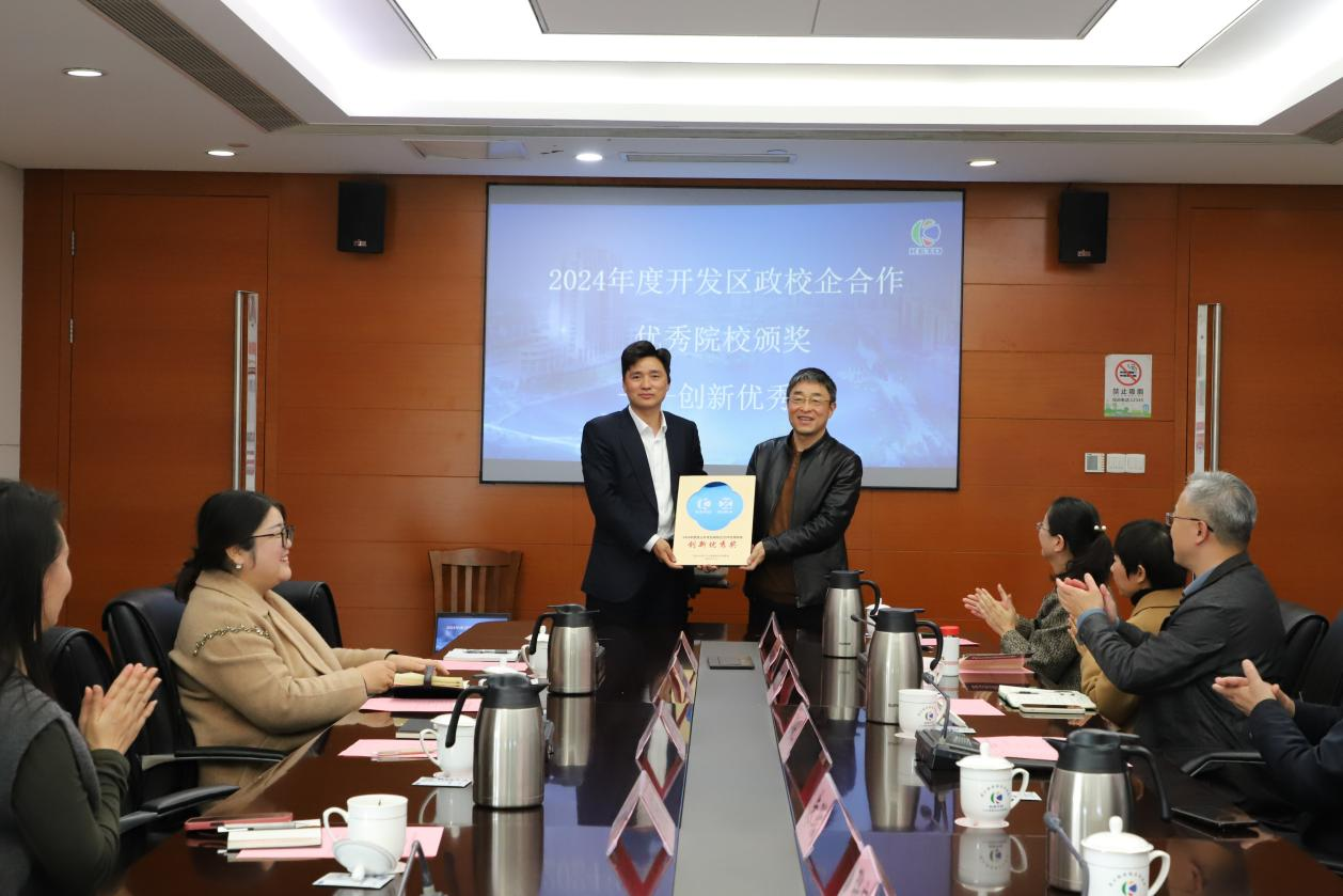会上,昆山开发区人社局授予我院“2024年度昆山开发区政校企合作优秀院校创新优秀奖”铜牌,肯定我院在推动政校企协同创新、服务地方发展中作出的积极贡献。
