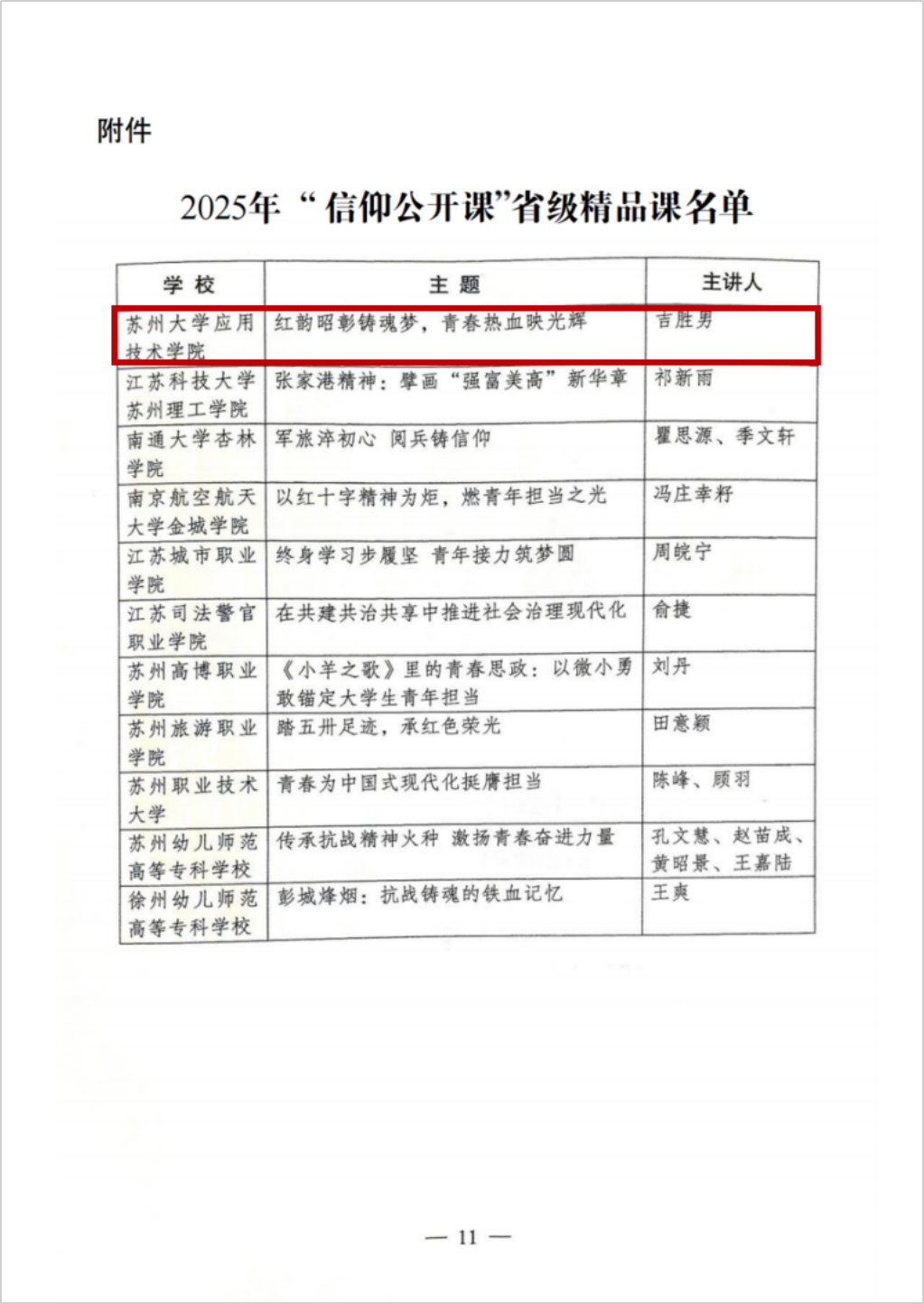近日,共青团江苏省委公布了2025年全省高校“信仰公开课”省级精品课评选结果,由学院团委选送的《红韵昭彰铸魂梦,青春热血映光辉》课程成功入选。