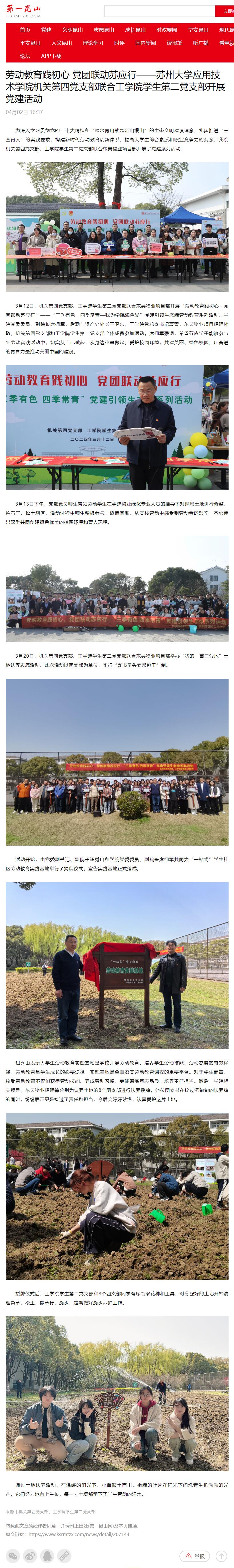 第一昆山:劳动教育践初心 党团联动苏应行——苏州大学应用技术学院机关第四党支部联合工学院学生第二党支部开展党建活动