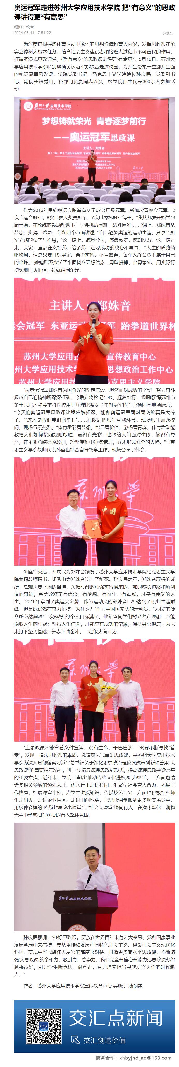 交汇点:奥运冠军走进苏州大学应用技术学院