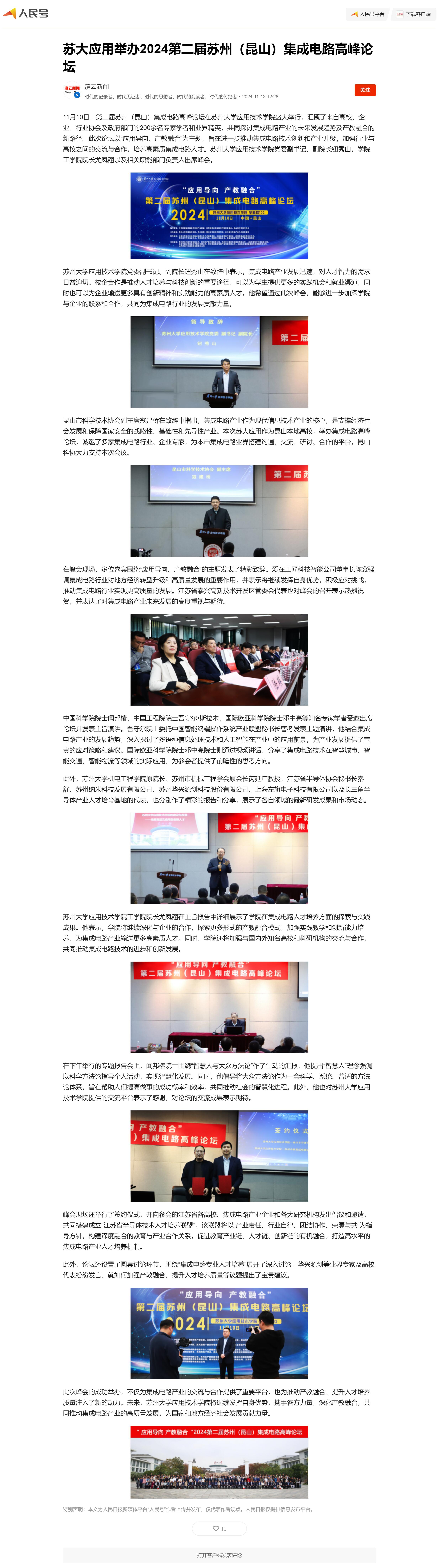 人民日报客户端:苏大应用举办2024第二届苏州(昆山)集成电路高峰论坛