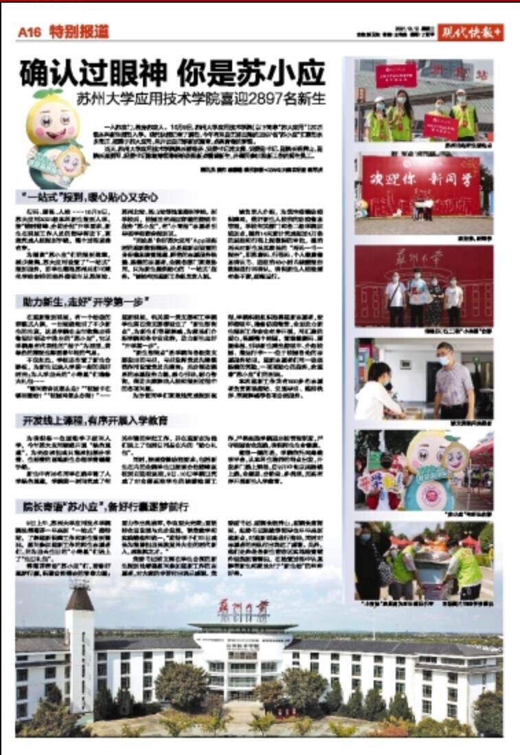 现代快报:苏州大学应用技术学院喜迎2897名新生