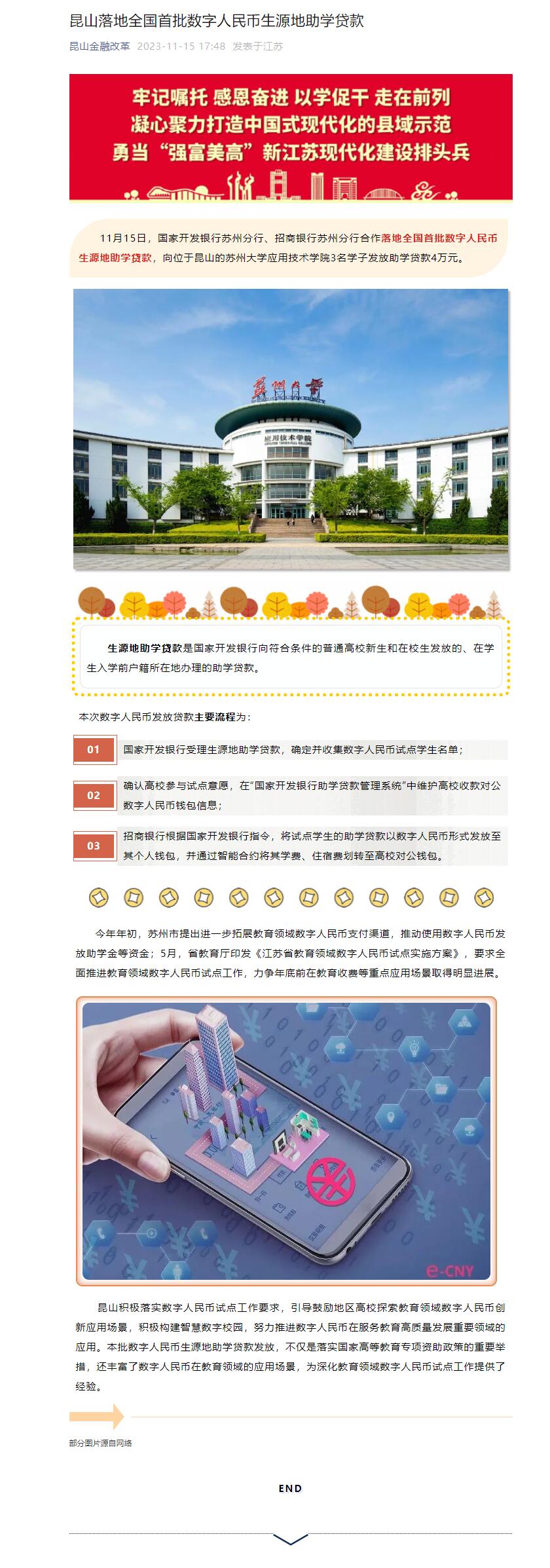 昆山金融改革:昆山(苏大应用)落地全国首批数字人民币生源地助学贷款