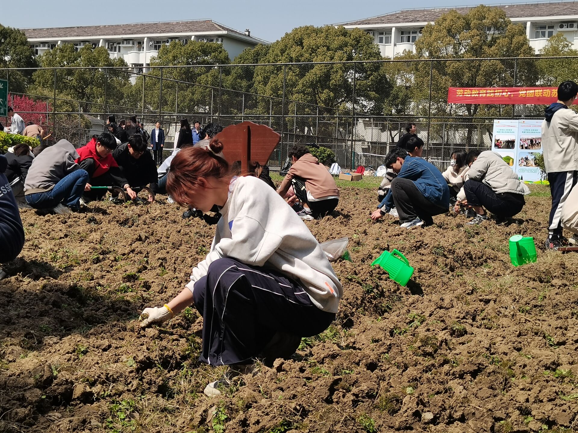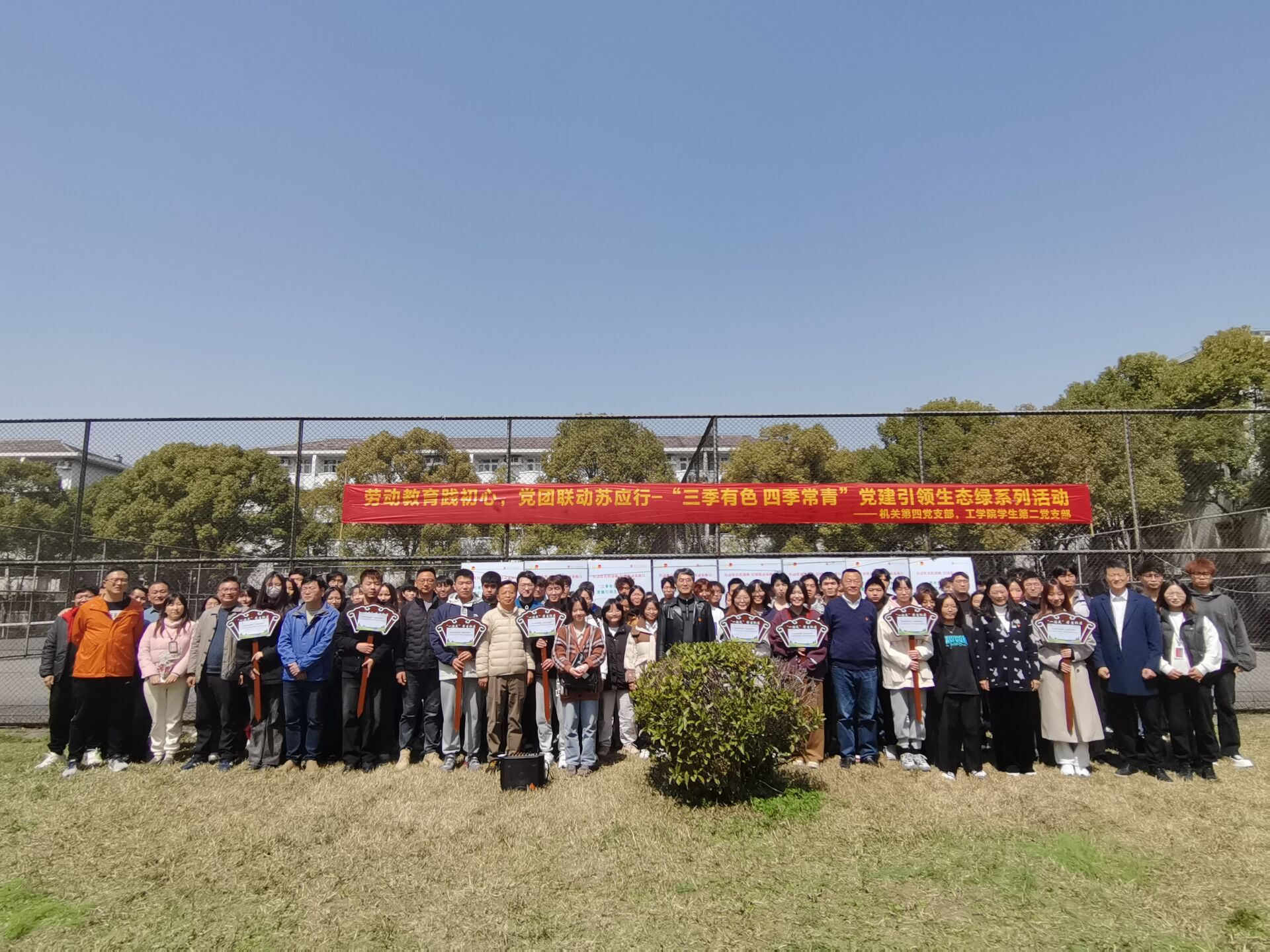 3月20日,机关第四党支部、工学院学生第二党支部联合东吴物业项目部举办“我的一亩三分地”土地认养志愿活动。此次活动以团支部为单位,实行“支书带头支部包干”制。