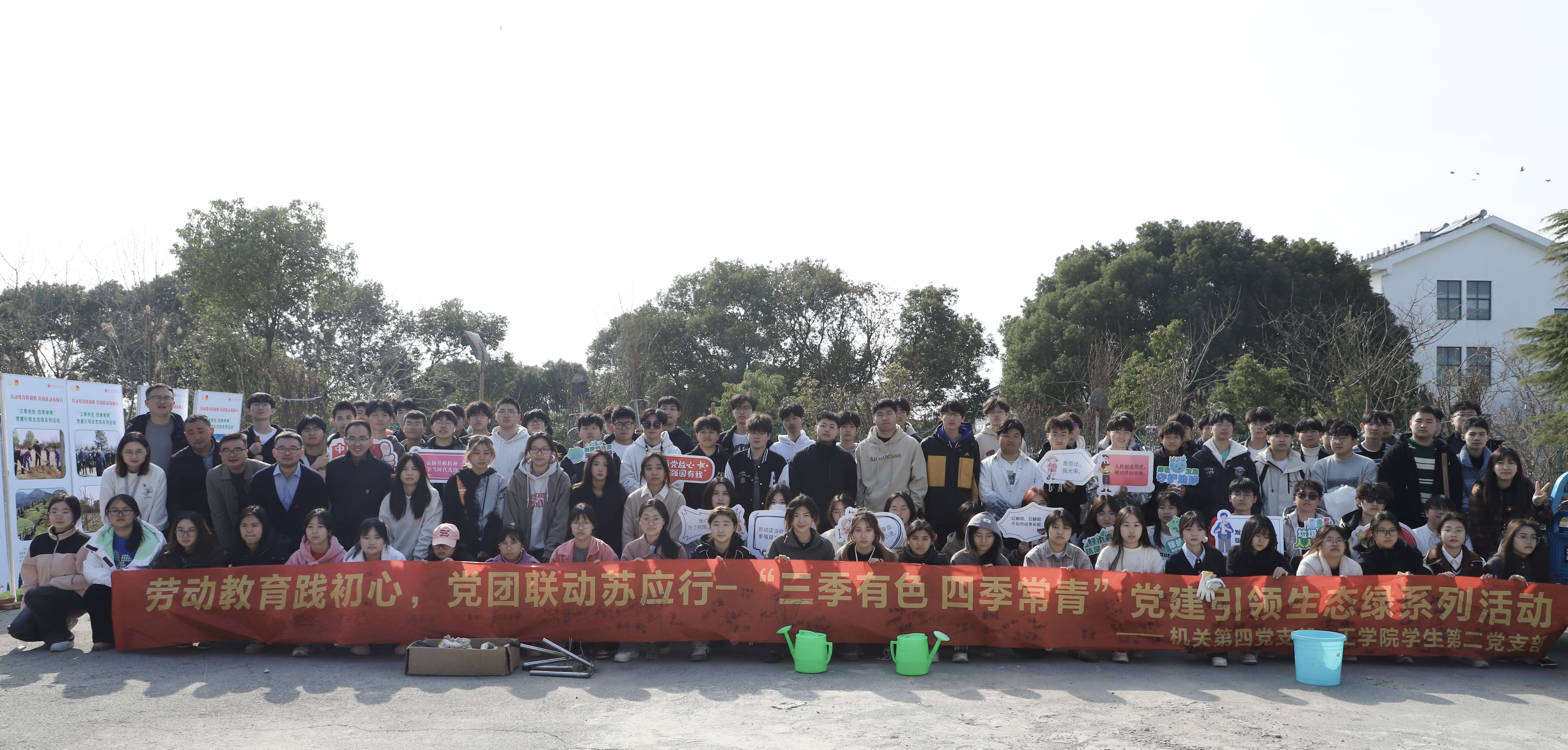 为深入学习贯彻党的二十大精神和“绿水青山就是金山银山”的生态文明建设理念,扎实推进“三全育人”的实践要求,构建新时代劳动教育创新体系,提高大学生综合素质和职业竞争力的观念,我院机关第四党支部、工学院学生第二党支部联合东吴物业项目部开展了党建系列活动。