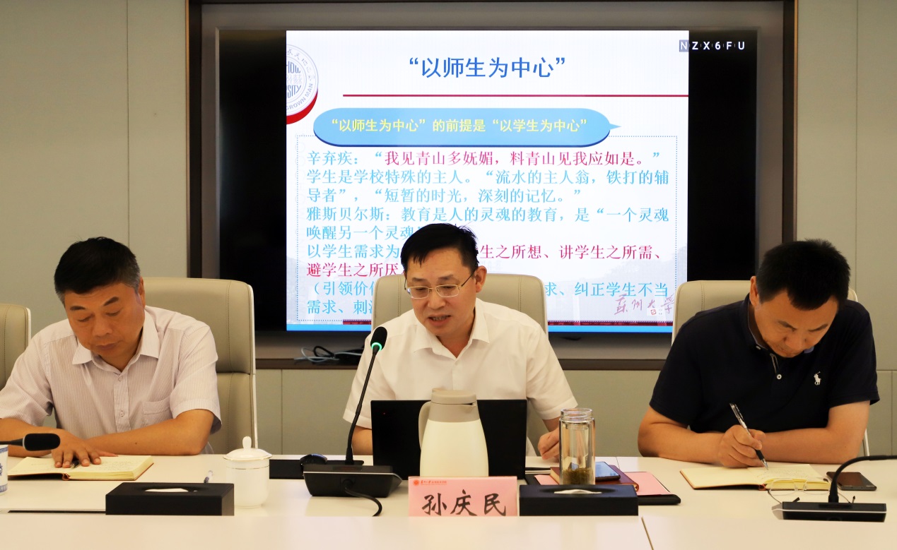接着,孙庆民为全体基层党组织书记讲授《学习党的历史 加强党纪教育》党纪学习教育专题党课。他结合党史谈纪律,指出党的十八大以来,全面从严治党取得了历史性、开创性成就,产生了全方位、深层次影响,探索出依靠党的自我革命跳出历史周期率的成功路径。各级党组织和广大党员干部要以史为镜,弘扬纪律强党的优良传统,以《中国共产党纪律处分条例》为基本遵循,把纪律教育渗透融汇于实际工作之中,切实贯彻好“以师生为中心”的发展理念,更好落实立德树人根本任务,努力解决制约学院各项事业发展的“难点、堵点”,推动学院高质量发展再上新台阶。