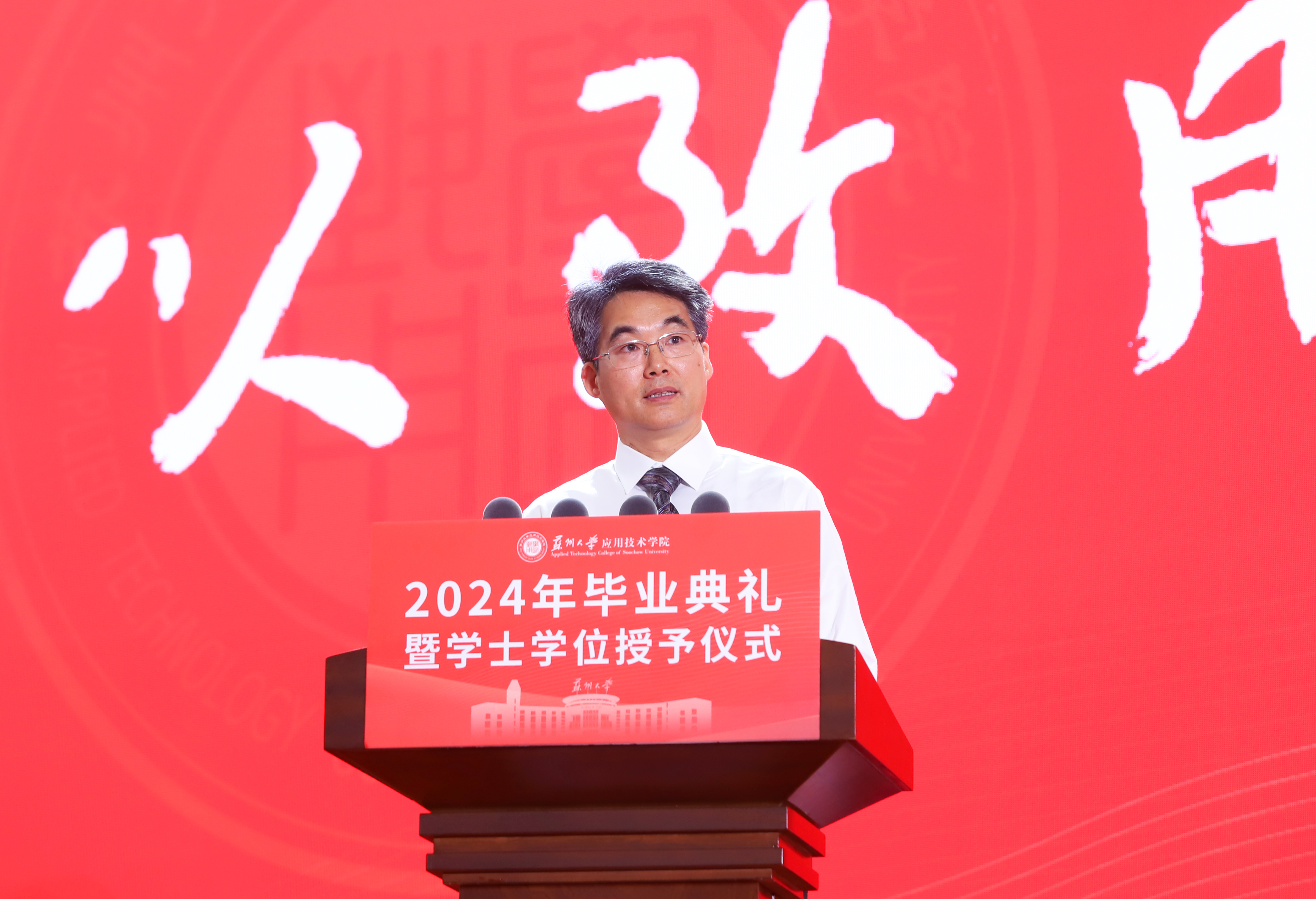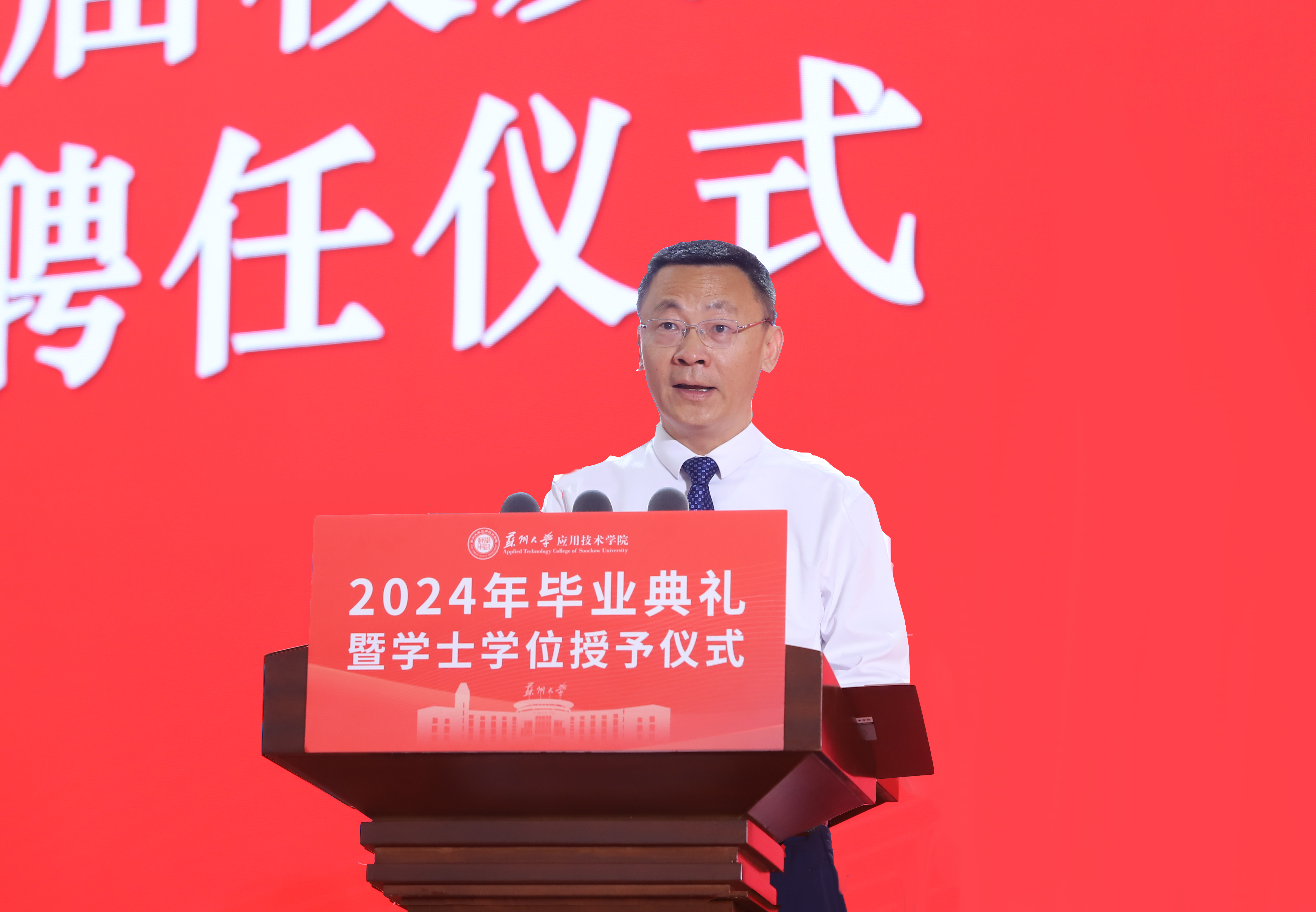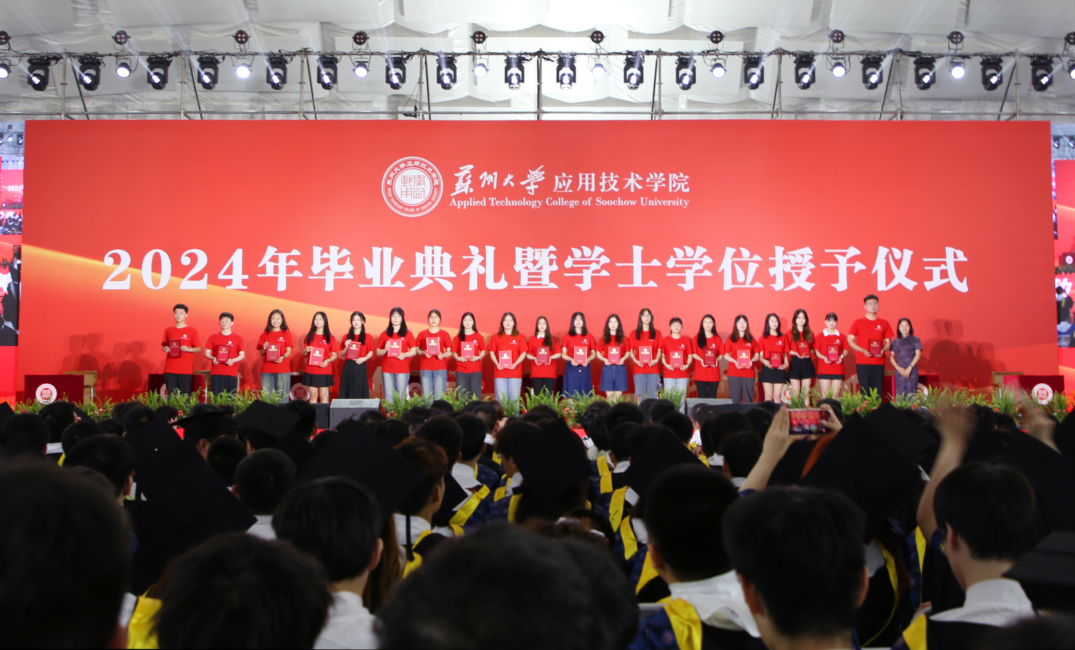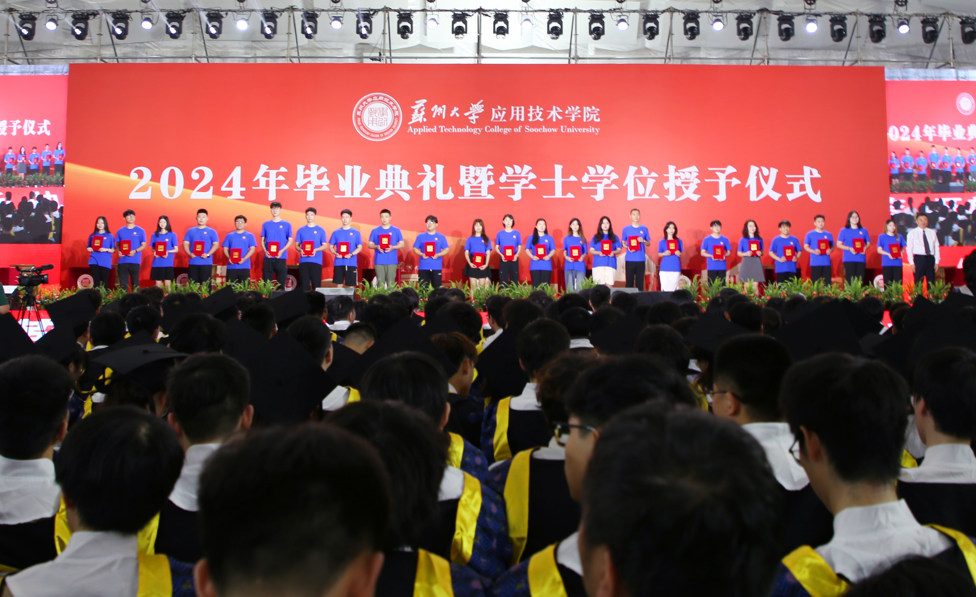 同时,根据《关于表彰2024届优秀毕业生的决定》,我院授予刘晶等247名同学2024年“苏州大学应用技术学院优秀毕业生”荣誉称号,推荐4名同学为2024年“江苏省普通高校省级优秀毕业生”。我院党委副书记、副院长钮秀山宣读优秀毕业生表彰决定。