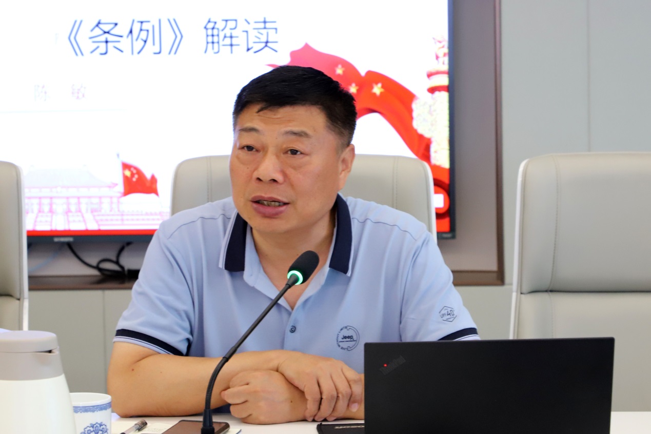 纪委书记陈敏围绕新修订的《中国共产党纪律处分条例》,阐述了修订《条例》的重要意义,要求广大党员干部在学习《条例》过程中,要深刻领悟习近平总书记关于推进党的自我革命、健全全面从严治党体系、全面加强党的纪律建设重要论述,心怀“国之大者”,切实把自己摆进去、把工作摆进去、把职责摆进去,深入领会修订《条例》的重点内容和着力方向,强化自我约束,提高免疫能力,凝聚干事创业的精气神,在新时代新征程上作出新贡献。