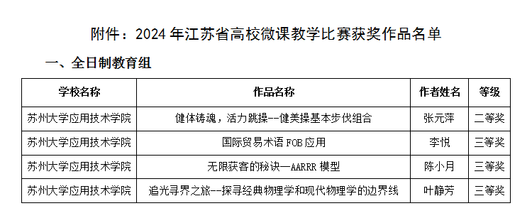 近日,江苏省高校微课教学比赛获奖名单公布。全省共148所院校参赛,我院推荐的8项作品中获奖4项,其中二等奖1项、三等奖3项。