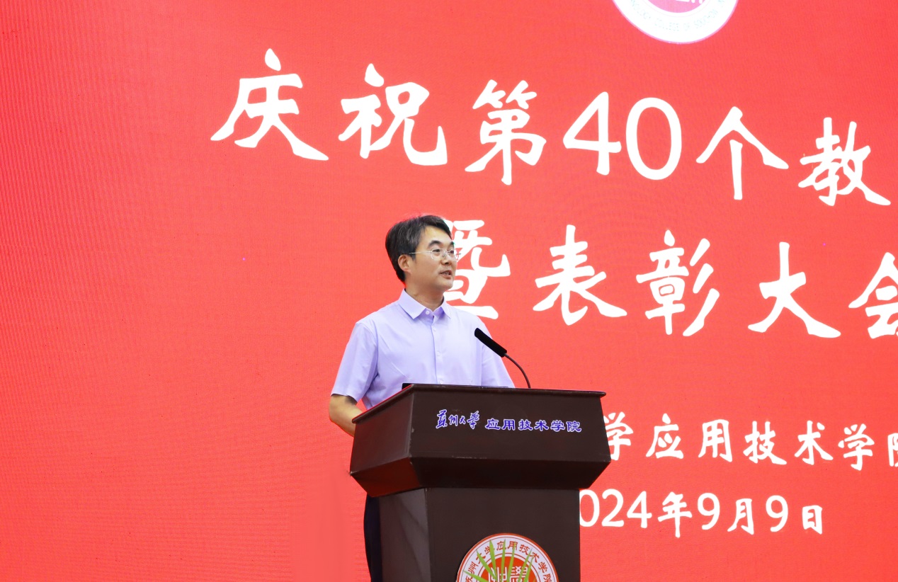 钮秀山指出,尊师重教的历史在我国源远流长。“三寸粉笔,三尺讲台系国运;一颗丹心,一生秉烛铸民魂。”习近平总书记在多个场合高度评价教师的地位和作用。师者,传道、授业、解惑,是学生锤炼品格、学习知识、创新思维、奉献祖国的引路人,是打造中华民族“梦之队”的筑梦人。全院上下紧紧围绕“大力弘扬教育家精神,加快建设教育强国”主题,在党建工作、教育教学、科研服务、办学水平、人才培养等方面均取得了可喜的成绩。钮秀山强调,我院高水平应用技术大学建设正如火如荼,征途漫漫,惟有奋斗!以如磐信念敲响岁月的洪钟,以昂扬姿势拨动时代的琴弦,我们一定能奏响更加雄浑壮阔的历史交响,书写更加灿烂辉煌的发展篇章!