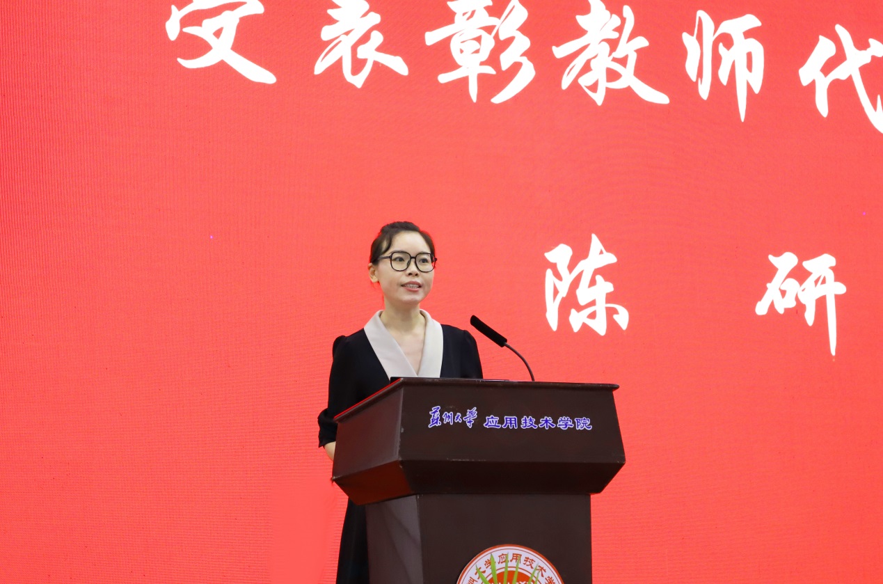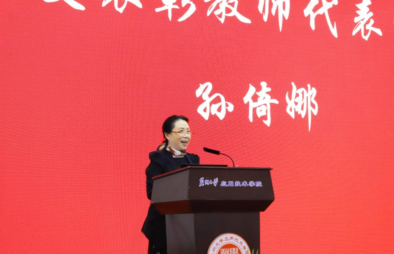 受表彰教师代表陈研、孙倚娜分别进行了发言,她们结合自身的工作分享了感想和体会,表达了自己对忠诚于人民教育事业初心的坚守和对学院未来发展的美好祝愿,并表示将以获此荣誉为新起点,更认真、更踏实、更有效地做好今后的工作,为学院发展贡献自己的力量。