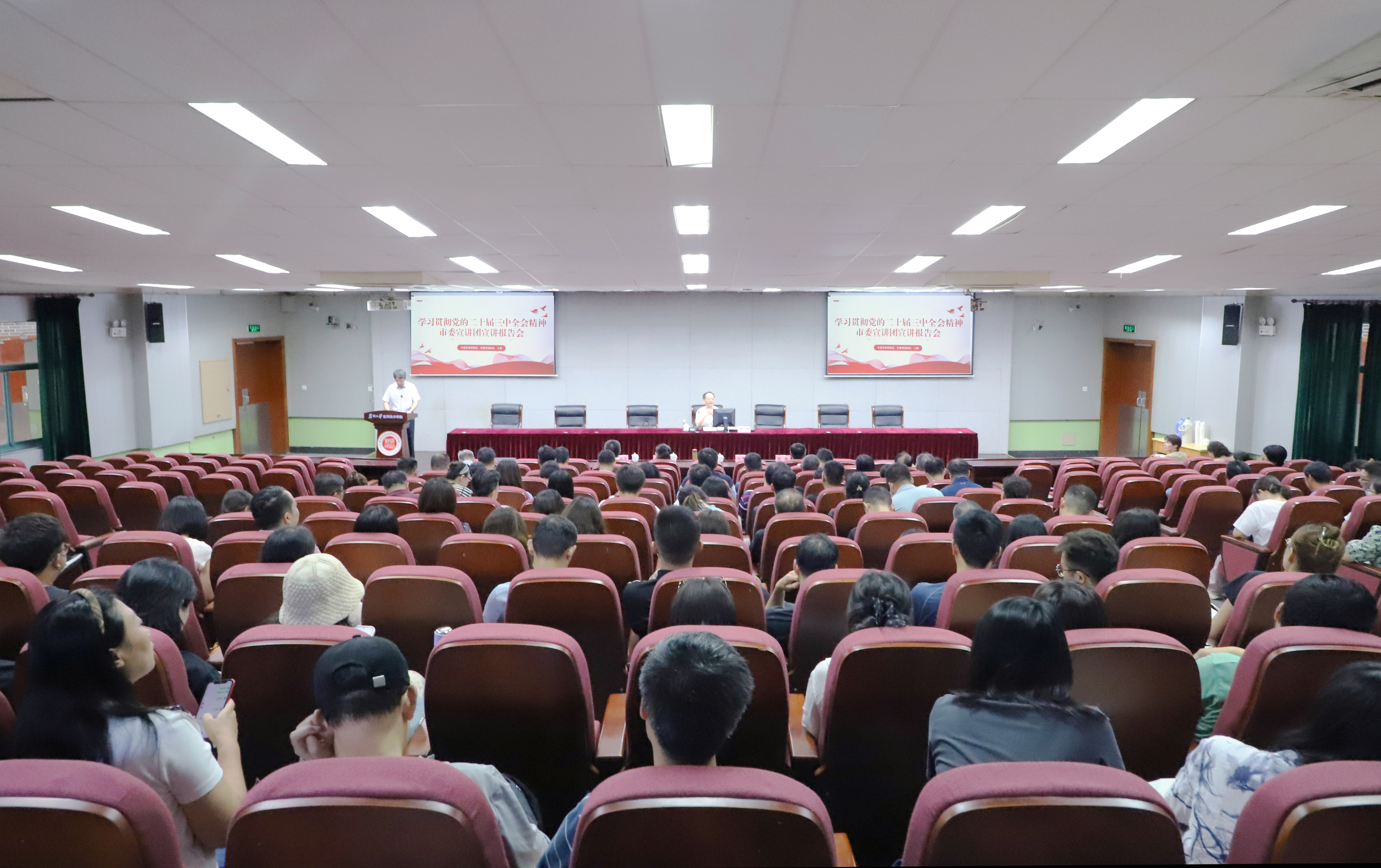 钮秀山在主持报告会时强调,学院各级党组织和党员干部要把学习宣传贯彻全会精神作为当前和今后一个时期的重大政治任务。要始终坚持政治引领,坚定自觉地用党的二十届三中全会精神统一思想、统一意志、统一行动,更好地把学习成果转化为忠诚拥护“两个确立”、坚决做到“两个维护”的实际行动。要在带头引领示范上下功夫,领导带头、以上率下,层层示范、检视自身,切实担当组织领导职责、率先垂范职责、深入推进职责,推动党的二十届三中全会精神在学院全面落实。要在推动学院高质量发展上出实招,学院上下要以此次宣讲为契机,紧密联系本职工作,结合傅菊芬院长在教学创新部署以及学院建设目标等方面的工作,深入分析当前学院发展面临的新形势,努力在发展中形成新思路,在改革开放中寻求新突破、开创新局面,推动学院高质量发展再上新台阶。