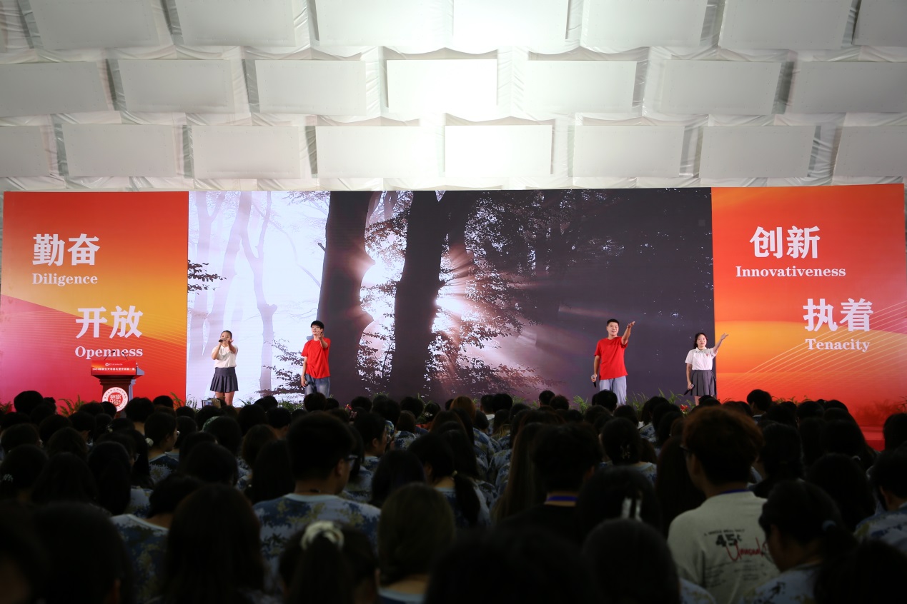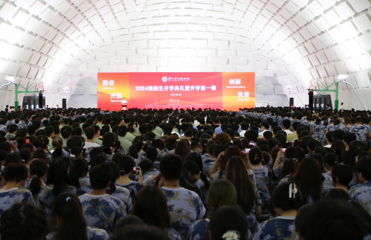 10时整,2024级新生开学典礼在庄严肃穆的国歌声中正式拉开序幕。