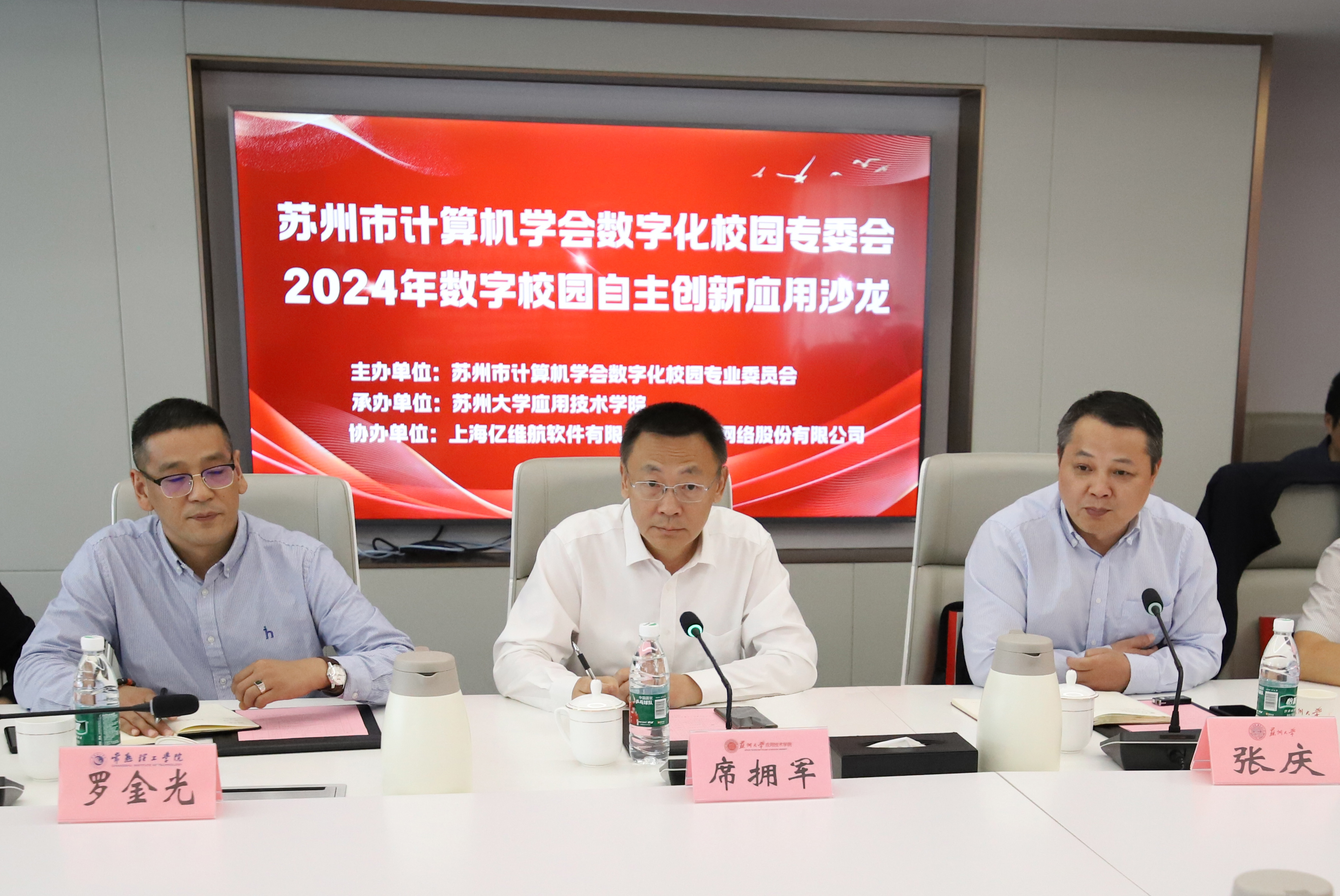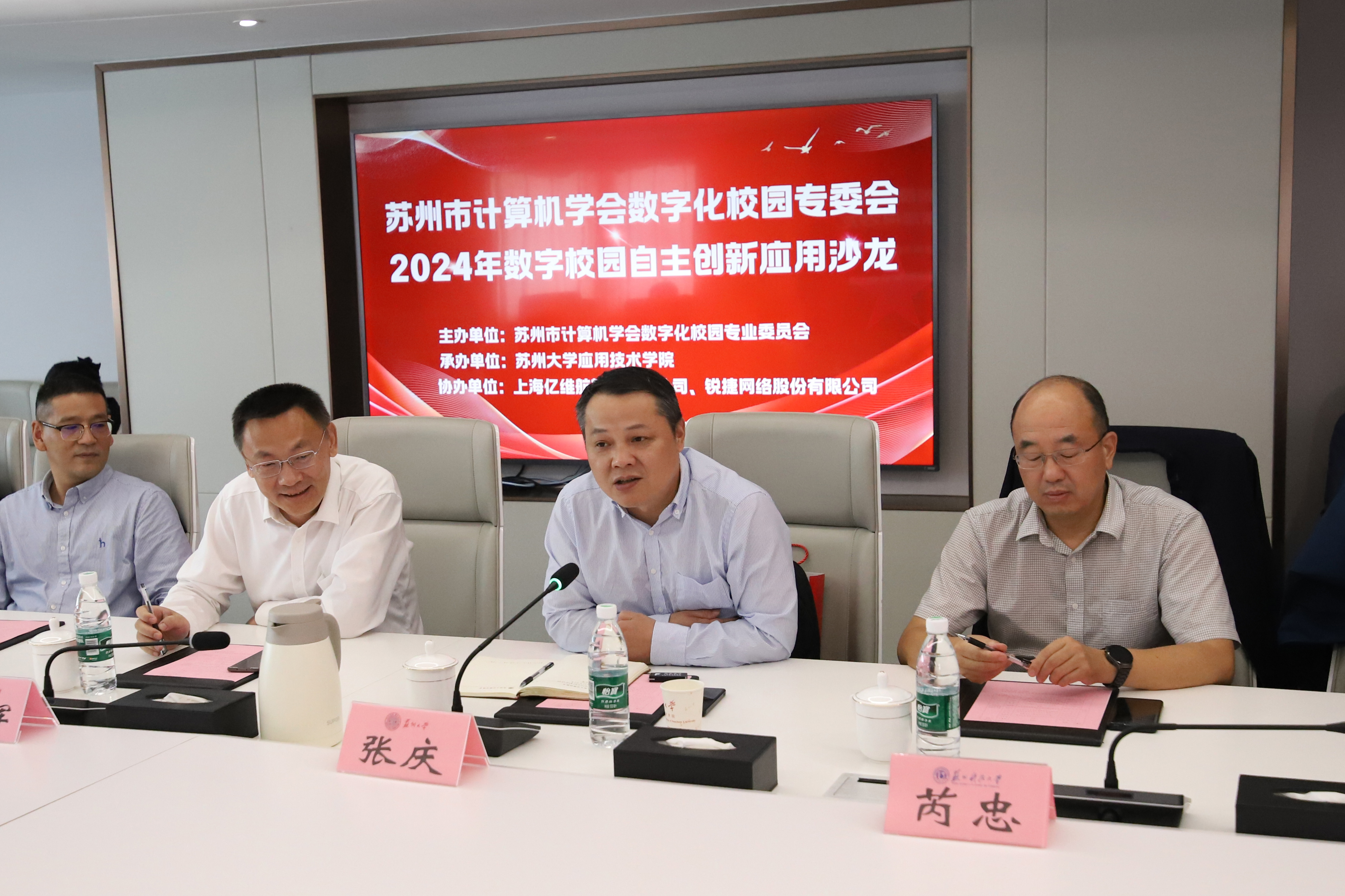 苏州市计算机学会数字化校园专业委员会会长张庆代表数字化校园专委会致辞,对各位领导、专家的到来表示感谢,对学院为本次活动所做的工作表示感谢。