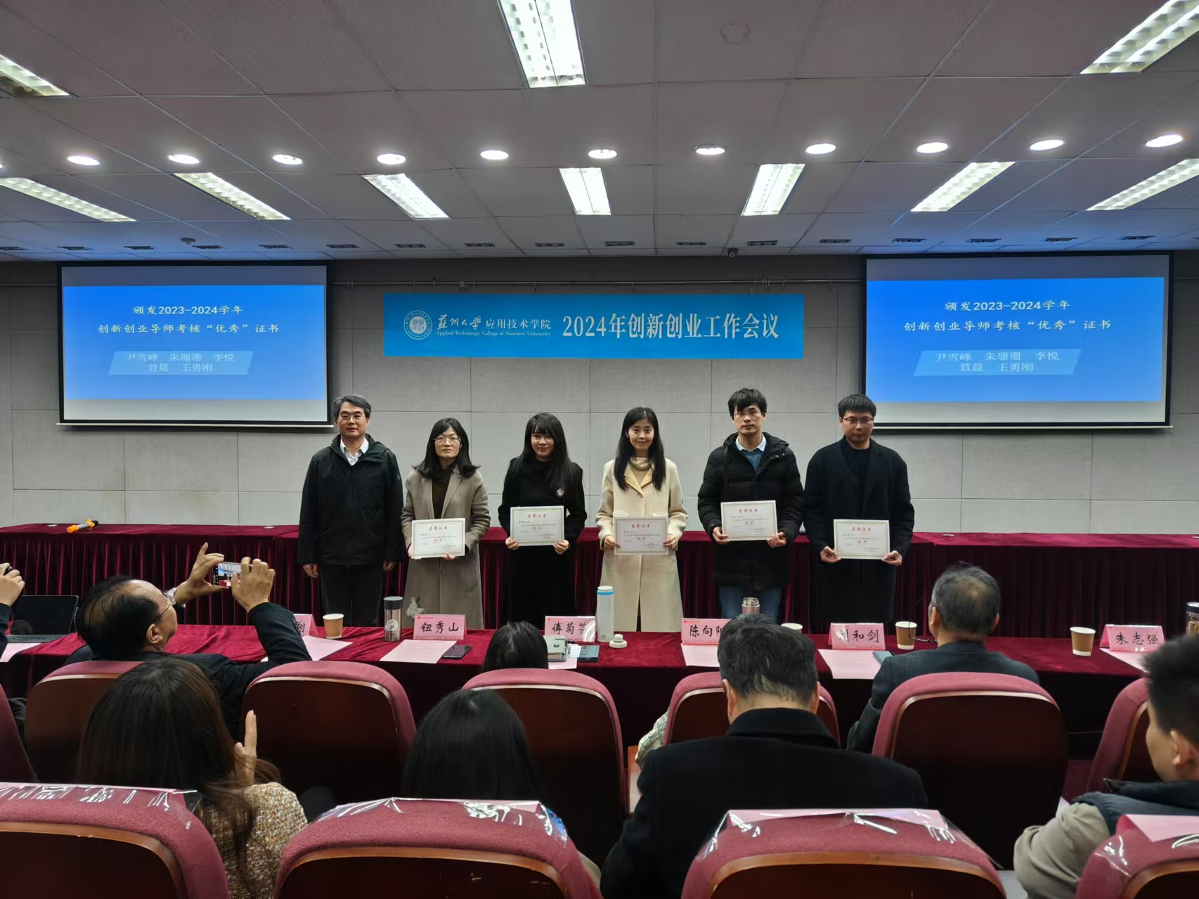 颁奖环节,钮秀山副书记首先表彰了2023-2024学年考核“优秀”的创新创业导师。这些导师在创新创业人才培养中发挥了重要作用,他们的努力和付出得到了认可和肯定。