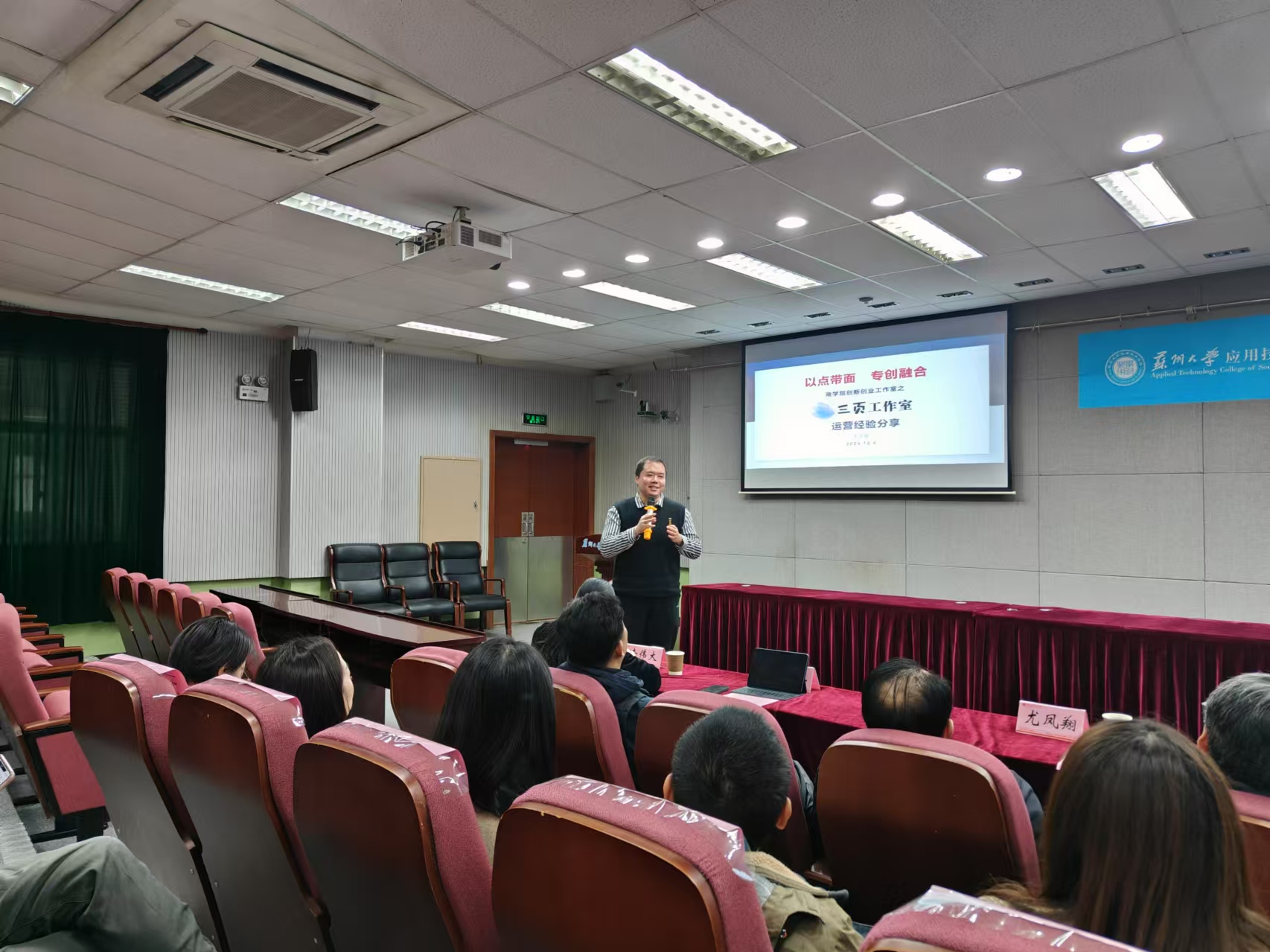 随后,朱志强对学院《创新创业导师管理办法(试行)》进行了解读。该办法明确了创新创业导师的选聘条件、工作职责、考核标准以及考核激励措施,旨在加强导师队伍建设,提高创新创业教育的针对性和实效性。