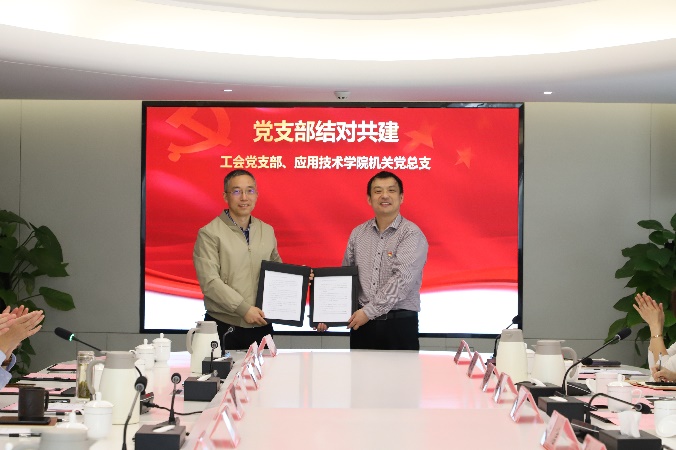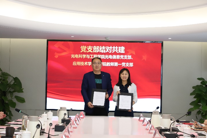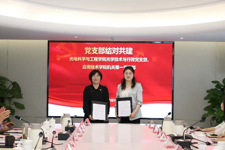 签约仪式上,工会党支部和应用技术学院机关党总支,光电科学与工程学院光电信息党支部和应用技术学院工学院教师第一党支部,光电科学与工程学院光学技术与行政党支部和应用技术学院机关第一党支部结对共建,分别签订了党建结对共建协议。今后上述党支部将围绕组织联建、党员联学、活动联办、资源联用等方面展开深度合作。
