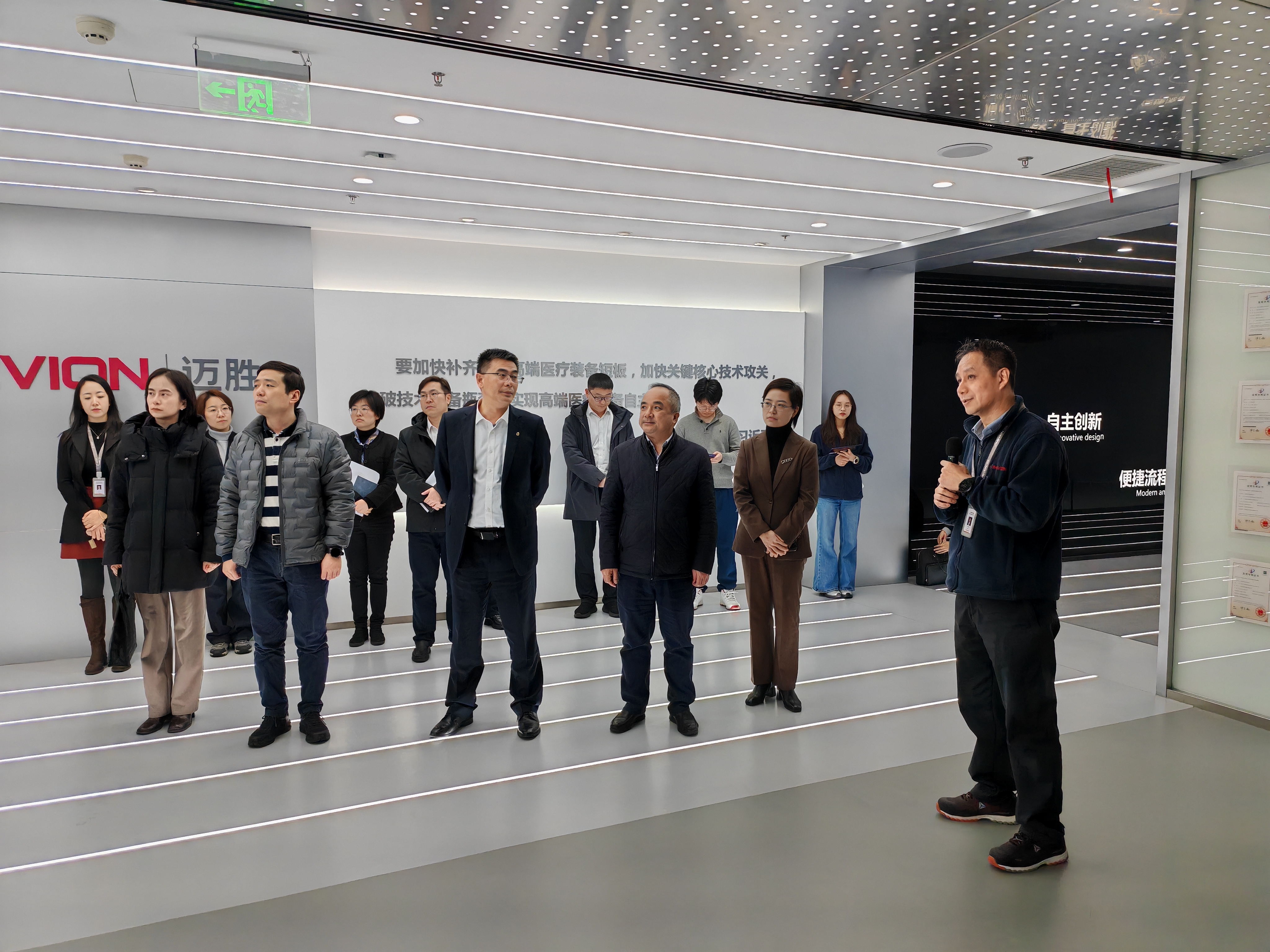 随后,调研组走进迈胜医疗设备有限公司和苏州能讯高能半导体有限公司,实地参观企业研发中心、生产车间与技术展厅,详细了解企业发展历程、核心技术、产业布局及人才需求。迈胜医疗是专注于肿瘤治疗的小型集成化质子放疗设备研发、生产、安装及服务的高新技术企业,能讯高能半导体作为国内领先的射频氮化镓(GaN)制造服务商,都对高素质应用型、技术技能型人才有着迫切需求。