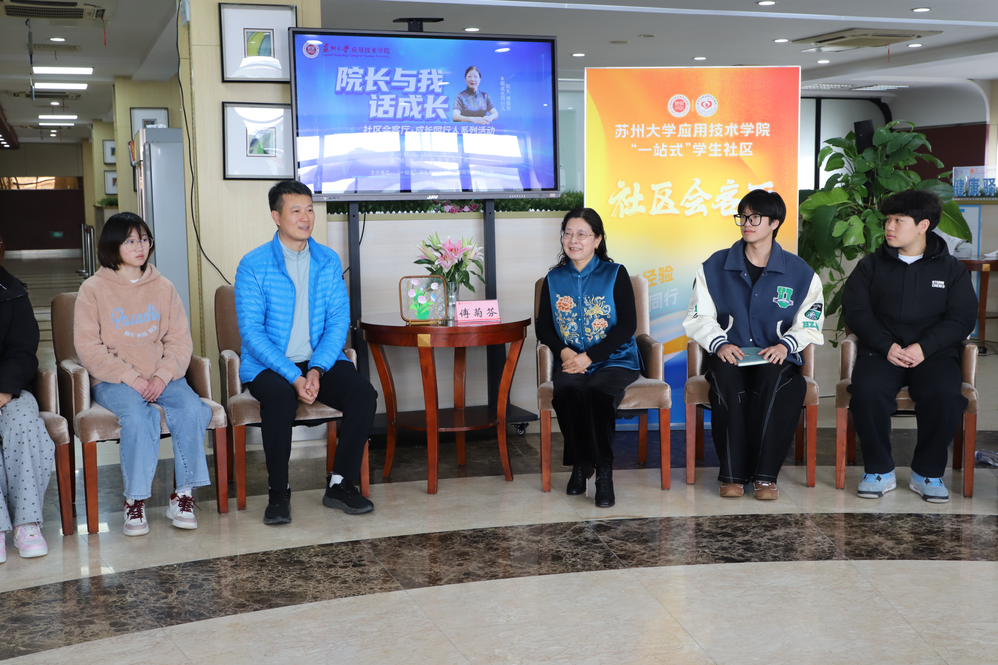 为深入推进“一站式”学生社区综合管理模式建设提质增效,创新构建有温度、接地气的常态化师生对话机制,让育人服务更贴近学生、扎根社区,3月25日,我院第二期“社区会客厅·成长同行人”主题活动如约举办。学院院长傅菊芬作为本期“成长同行人”走进学生社区,与青年学子围坐畅谈,面对面共话成长成才之路,学生工作处副处长李响主持本次活动。
