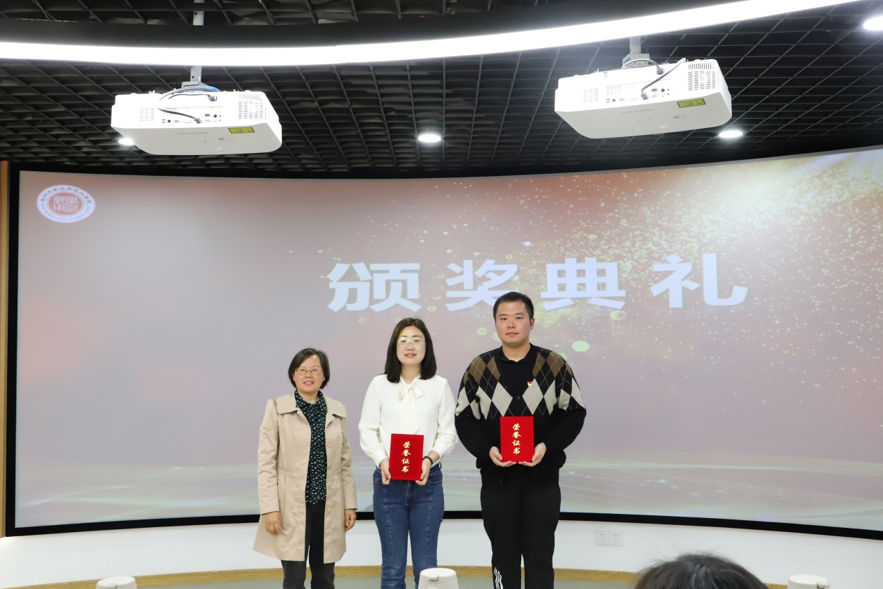 (钮秀山、陈敏为三等奖获得者颁奖)