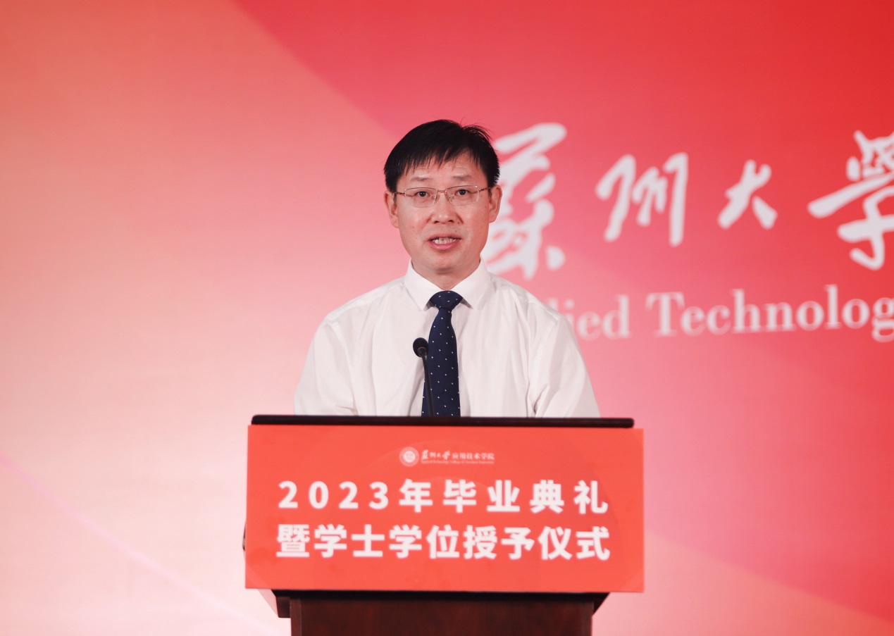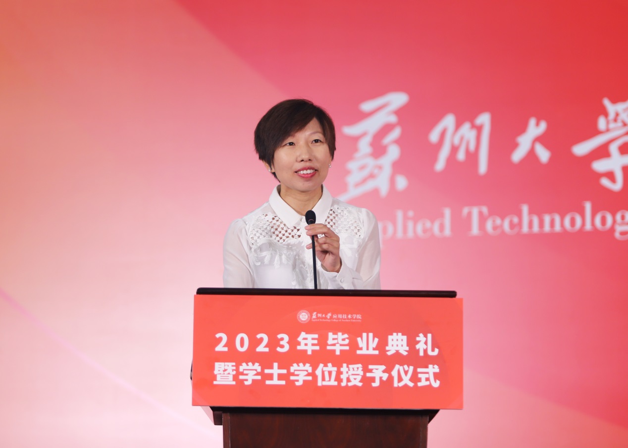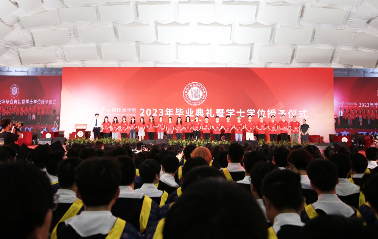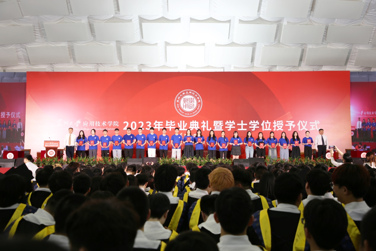 根据《关于表彰2023届优秀毕业生的决定》,我院授予童川等228名同学2023年“苏州大学应用技术学院优秀毕业生”荣誉称号,推荐4名同学为2023年“江苏省普通高校省级优秀毕业生”。我院党委书记孙庆民宣读优秀毕业生表彰决定。