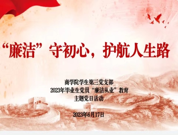 青年人只有树立坚定的理想信念,才能经得住各种风险考验,将未来之路走得长远、走得稳当。为进一步加强毕业生廉洁自律意识,筑牢拒腐防变的思想堤坝,近期,学院纪委组织开展“廉洁守正清风启,洁以明德砺奋斗”2023届毕业生“廉洁教育月”系列主题活动。用多样且具有吸引力的形式、丰富且富有意义的内容,引领毕业生用行动扣好职场“第一粒扣子”。