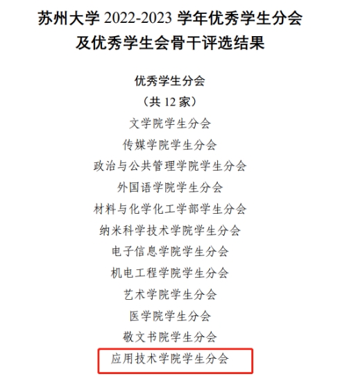 (苏州大学优秀学生分会评比结果)
