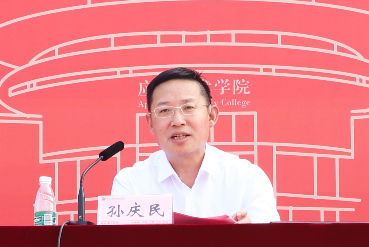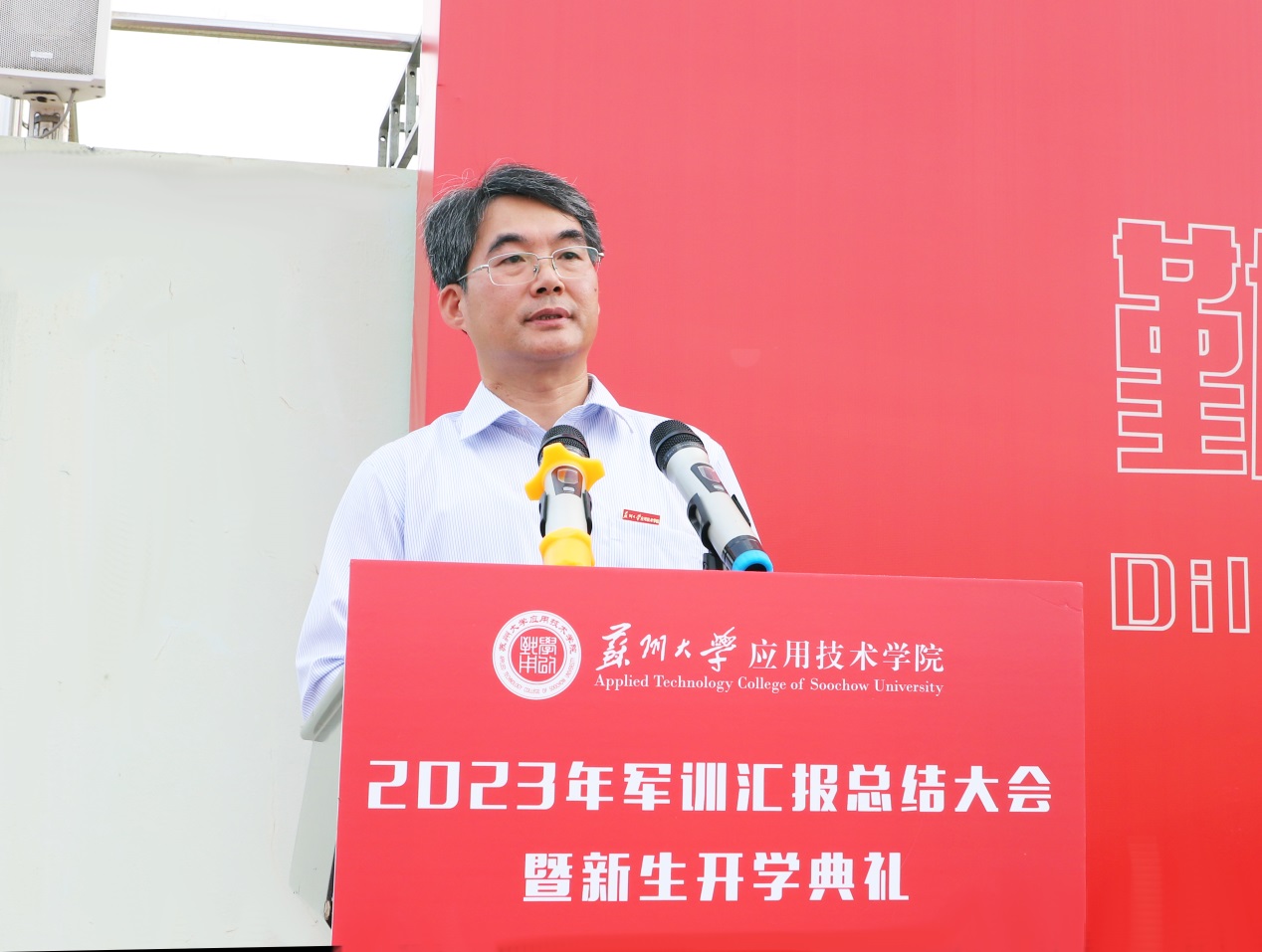 在随后举行的2023级新生开学典礼上,孙庆民书记受傅菊芬院长委托代表学院向全体2023级新同学们表示热烈欢迎,他深情寄语全体新生并现场开讲了新生第一课。“今天,3062名‘苏小应’加入了我们苏应大家庭。我代表全院师生员工,向你们表示衷心的祝贺和热烈的欢迎,并借此机会,向哺育培养你们的家长老师和关心支持你们的社会各界致以亲切的问候和诚挚的感谢!”