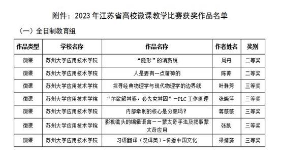 近日,江苏省高校微课教学比赛获奖名单公布。全省共148所院校参赛,我院推荐的8项作品中获奖7项,获奖率较往年有小幅提升,其中二等奖2项、三等奖5项。