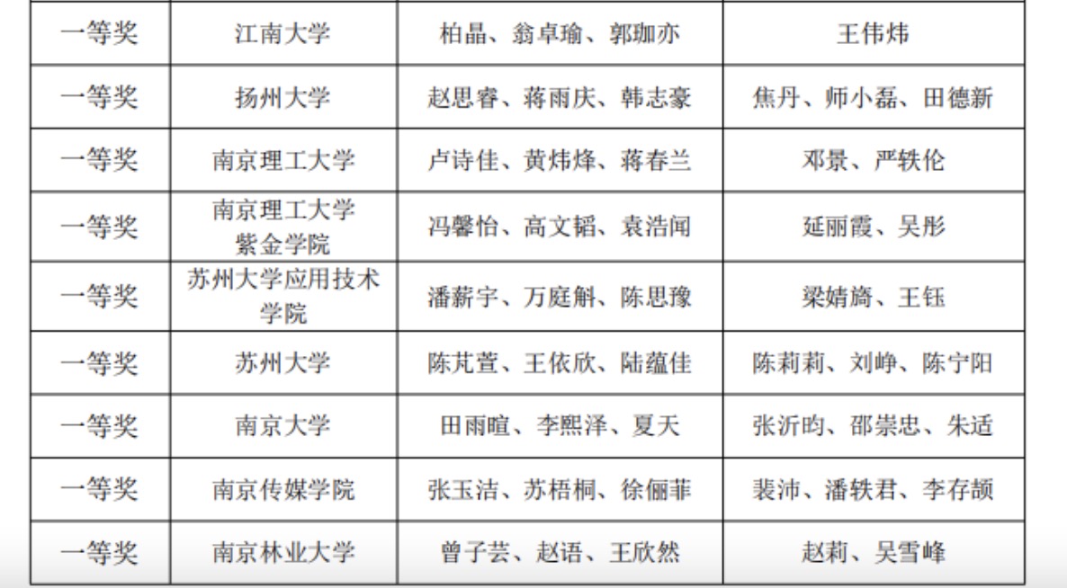 (本科中国学生组一等奖获奖名单)