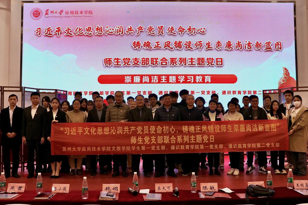 习近平文化思想深刻体现了理论与实践相结合、历史与现实相贯通、认识论与方法论相统一,具有鲜明的科学性、人民性、实践性、开放性。廉洁文化建设作为习近平文化思想的重要组成部分,是全面从严治党的重要举措。党的二十大擘画了全面建成社会主义现代化强国,以中国式现代化全面推进中华民族伟大复兴的宏伟蓝图,让苏应师生携手弘扬风清气正的廉洁文化,让廉洁相伴一生!